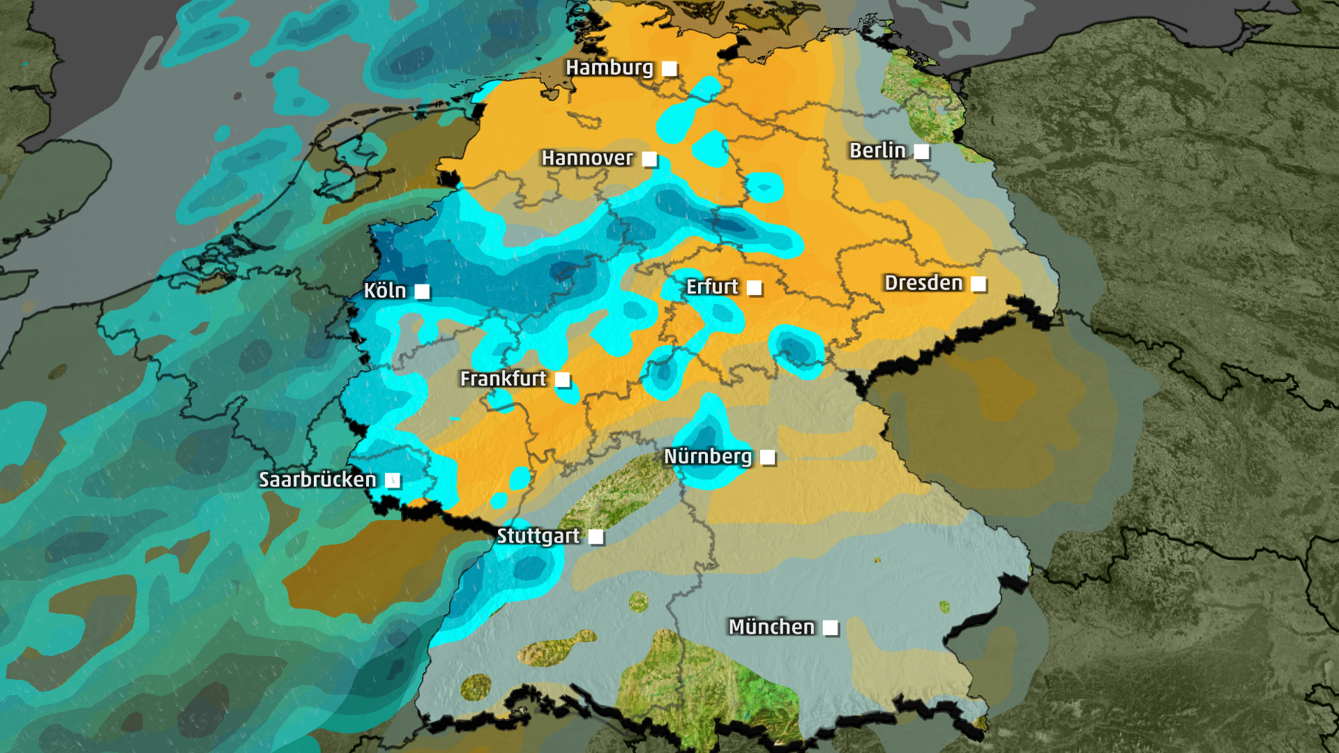 Die stärksten Sommergewitter sind jedoch im Süden zu erwarten. Hier kann es zu markanten Gewittern kommen mit Starkregen und Hagel. Der Regen wird mit 15 bis 20 Liter in einer Stunde prognostiziert. Das ist zwar die unterste Schwelle des Starkregens, aber würde trotzdem schon Unwetter bedeuten.