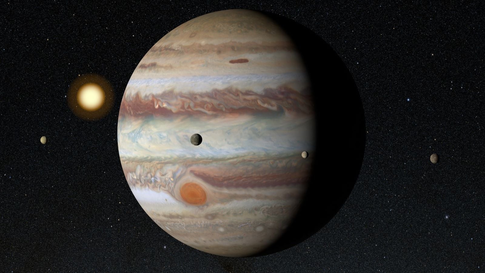 Zum genannten Zeitpunkt trennen Erde und Jupiter 633 Millionen Kilometer, dies ist etwas mehr als die vierfache Entfernung der Erde zur Sonne. Das von Jupiter reflektierte Sonnenlicht benötigt 35 Minuten, um zur Erde zu gelangen. Mit 140.000 Kilometer Äquatordurchmesser ist Jupiter nicht nur der größte der acht Planeten unseres Sonnensystems, er dreht sich auch am schnellsten. Eine Umdrehung des Riesenplaneten dauert nur knapp zehn Stunden.