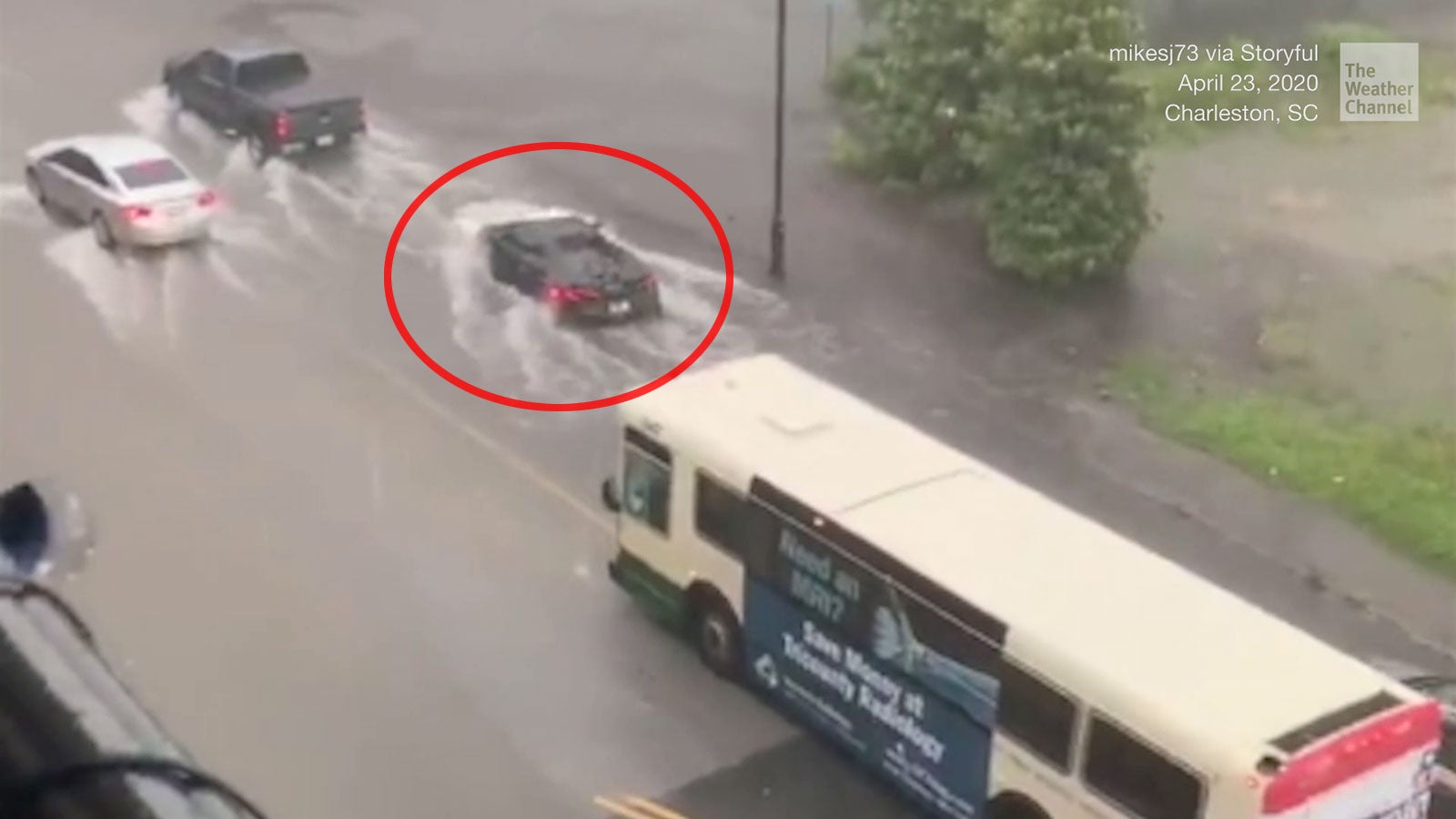Mit dem Sportwagen in die Fluten - Fahrer bereut es sofort | The Weather Channel