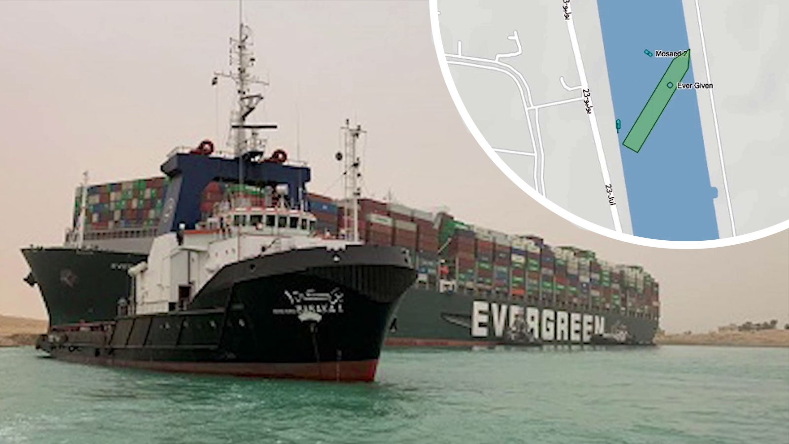Acht Schlepperboote sind nach Angaben der Suezkanal-Behörde im Einsatz, um den Frachter zu befreien. Wind und die Größe des Schiffs erschweren ihre Arbeit laut GAC jedoch. Nach Angaben der Schiffsradare handelt es sich um den Frachter „Ever Given“.
