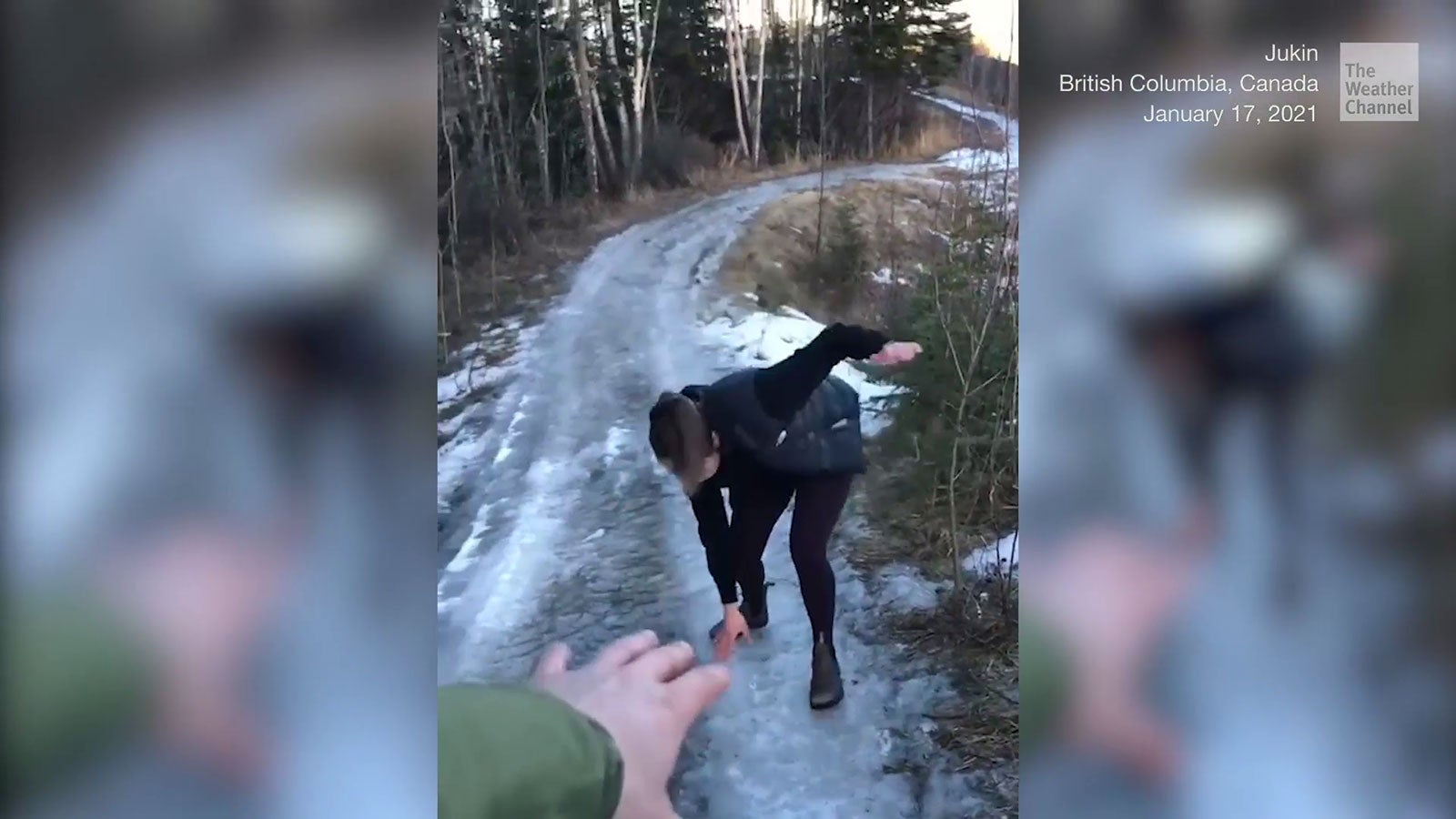 Frau versucht eisigen Hügel zu erklimmen - und gibt nicht auf dabei - Videos from The Weather Channel