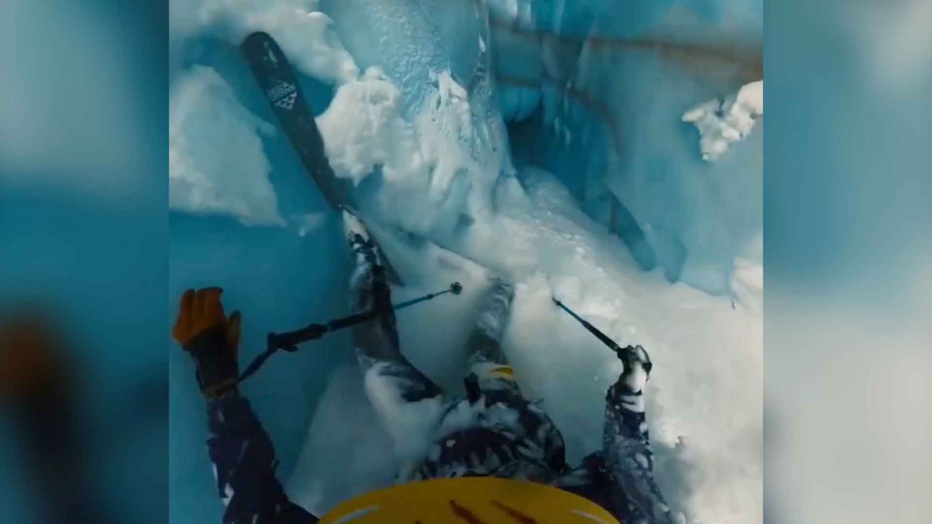 Was zunächst wie ein normaler Skitag in den französischen Alpen aussieht, verwandelt sich in Sekundenschnelle in einen Alptraum, als einer der Fahrer plötzlich in eine Gletschermühle stürzt.