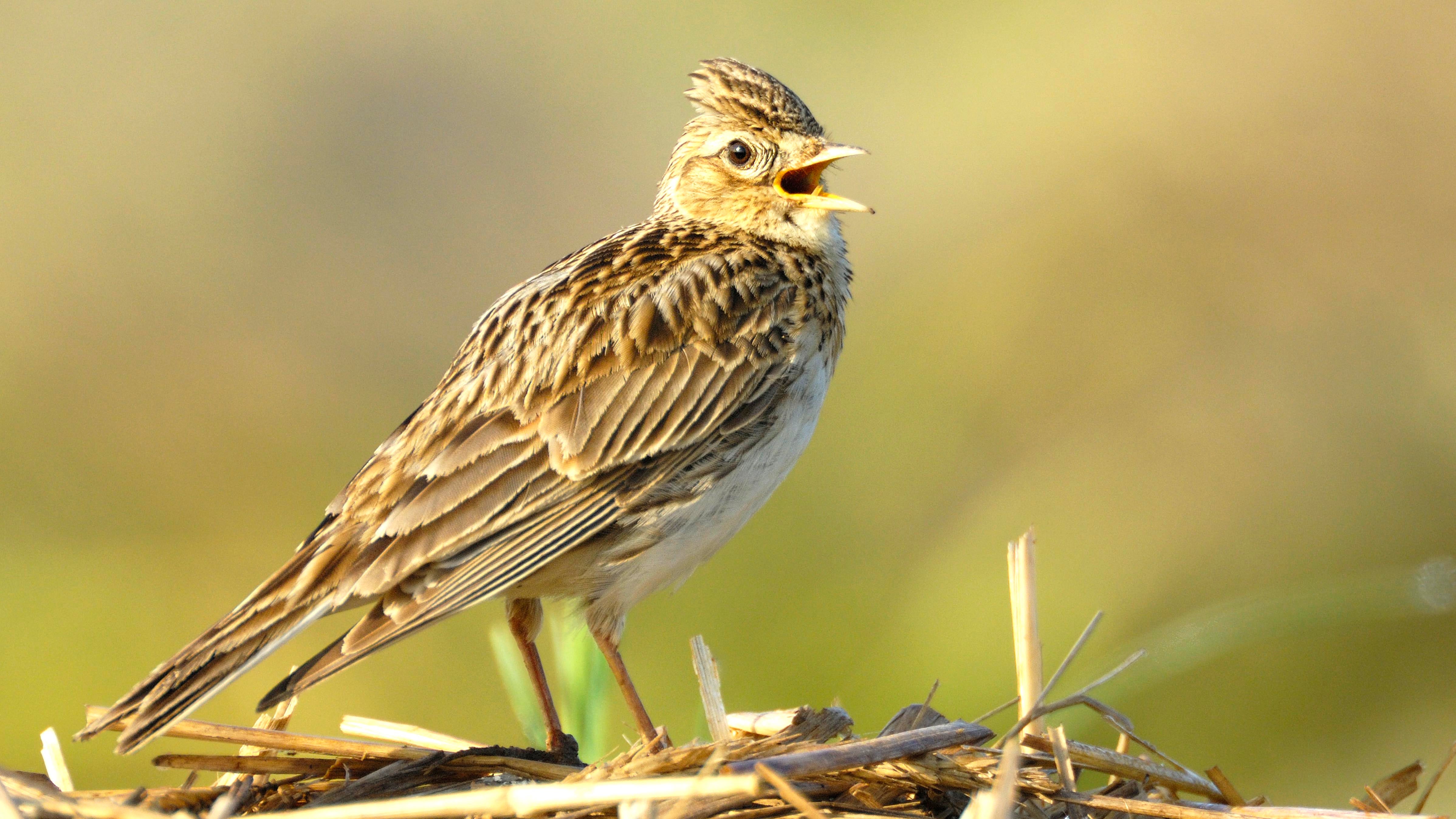 Die graubraune Feldlerche ist der Vogel des Jahres 2019 und zieht in großen Trupps gen Süden, über Stoppelfelder und Grassteppen. Sie fliegt eher kurze Strecken mit flatternden Flügelschlag.