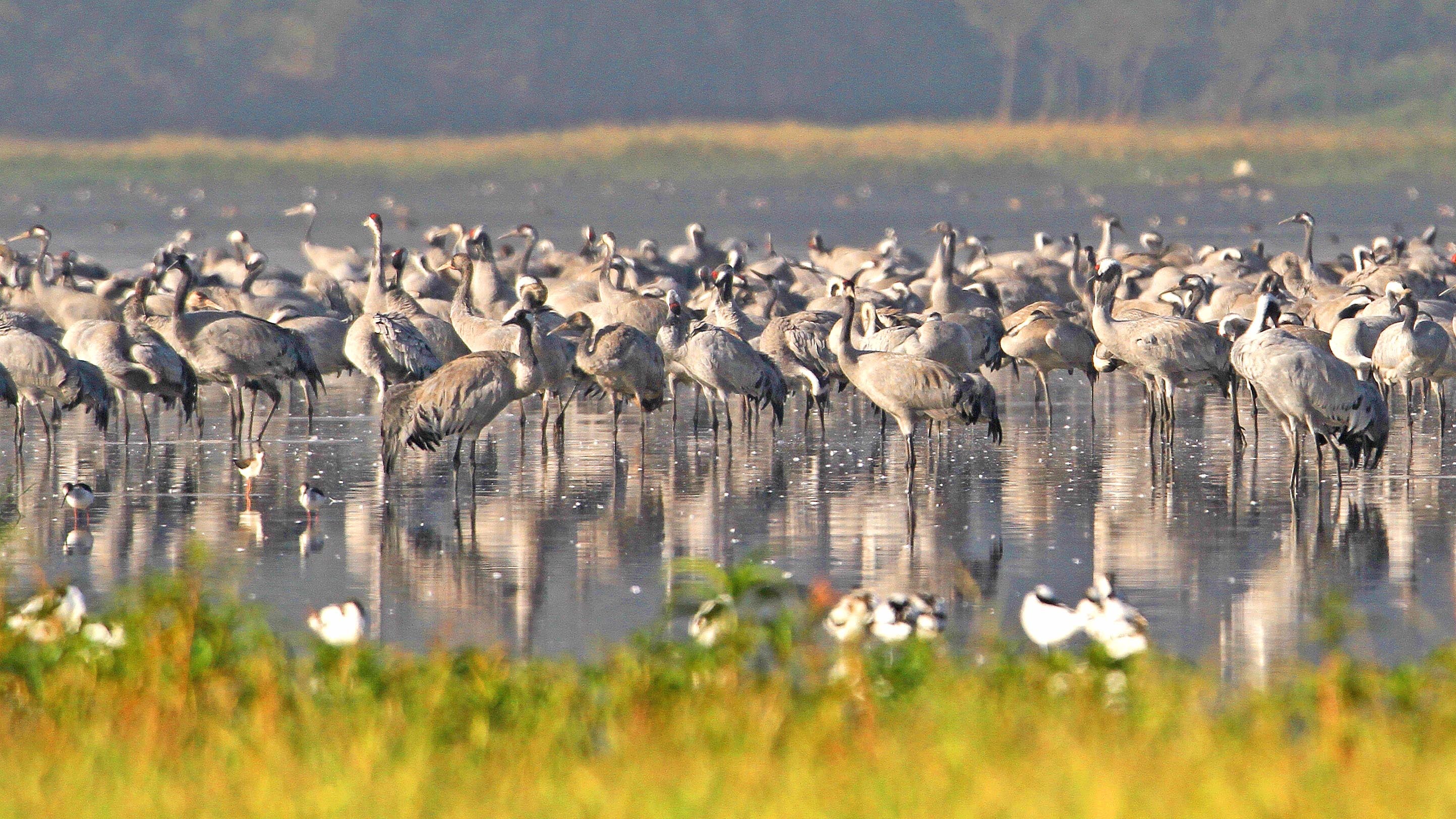 Großartiges Schauspiel: Kraniche versammeln sich für ihren Zug ins Winterquartier. Einer der größten Kranich-Rastplätze Europas befindet sich bei Linum im Havelland.