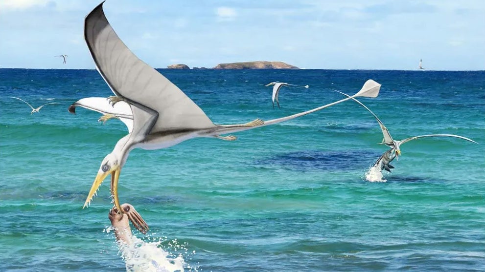 Rekonstruktion des Jagdverhaltens von Flugsauriern, die in der Nähe der Wasseroberfläche fliegen, um Kopffüßer zu fangen.
