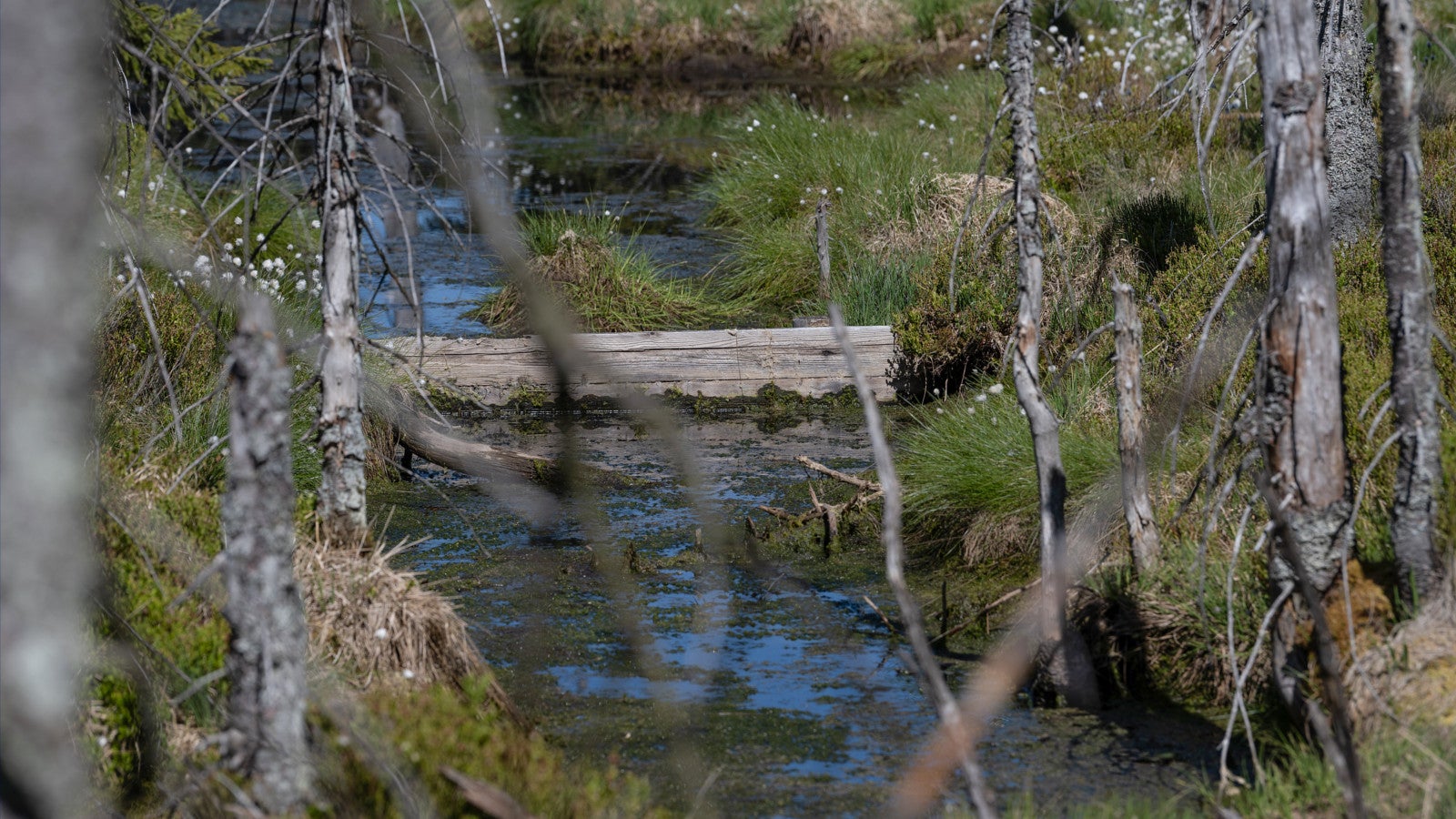Niedersachsen, Oderbrück: Blick auf einen Wassergraben im Brockenfeld Moor im Harz. Zahlreiche seltene oder bedrohte Tier- und Pflanzenarten, die in diesem Jahr als Tier oder Pflanze des Jahres gewürdigt wurden, sind auch im Nationalpark Harz zu Hause.