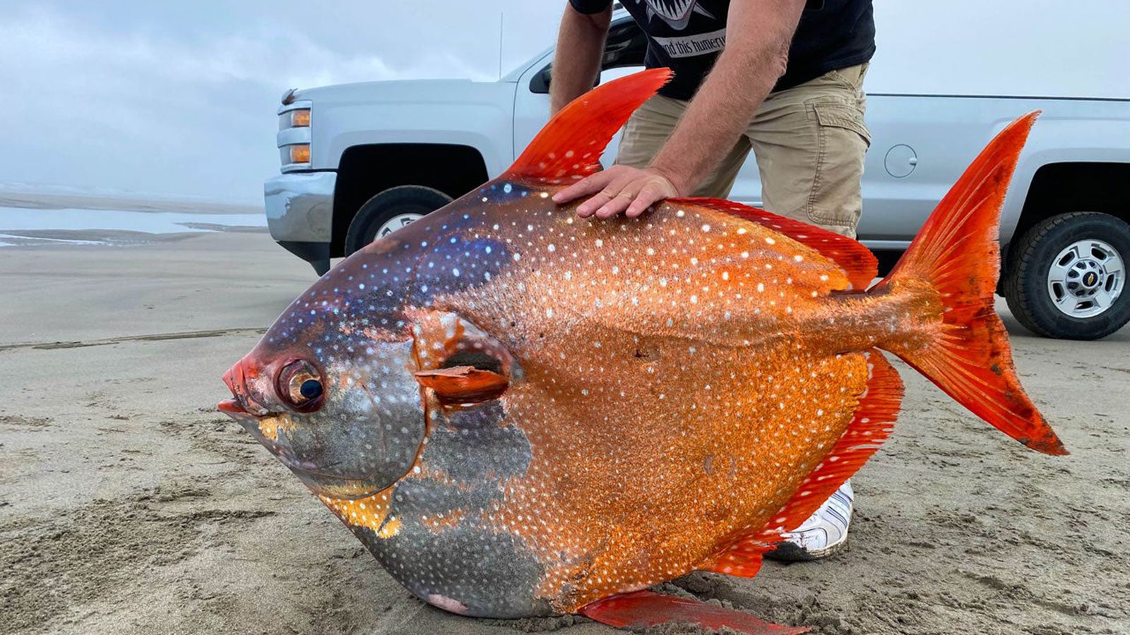 Ein seltener Anblick am Strand von Oregon: ein riesiger, 50 Kilogramm schwerer Mondfisch. Mondfische dieser Größe sind sehr selten an der Westküste - aber es könnten mehr werden.