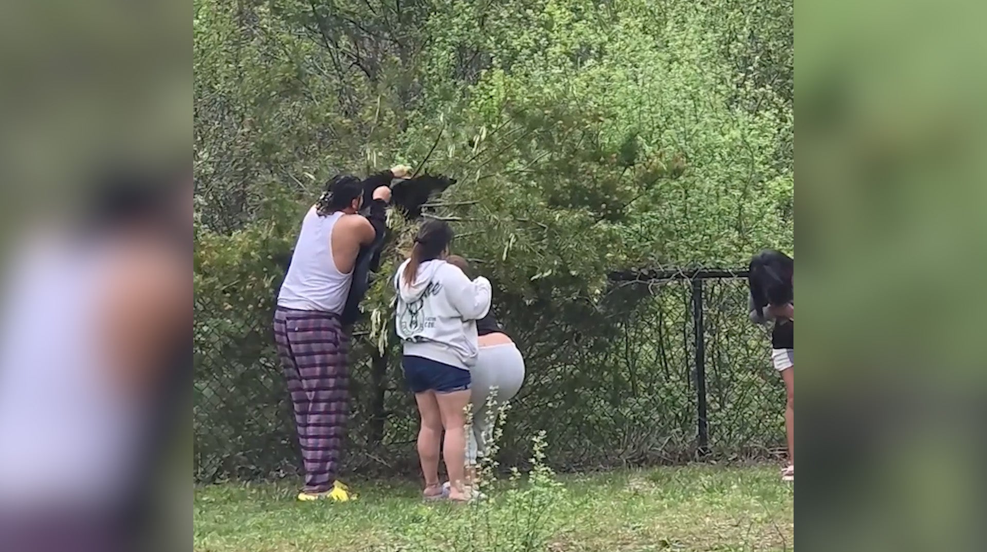 Dieses verstörende Video zeigt mehrere Personen, die zwei Bärenjunge von einem Baum zerren, um Selfies mit ihnen zu machen.