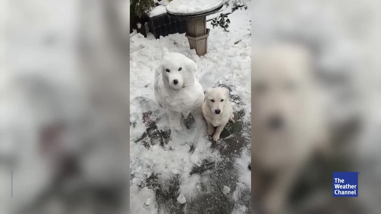 Mann baut seinen Hund aus Schnee nach - Videos from The Weather Channel