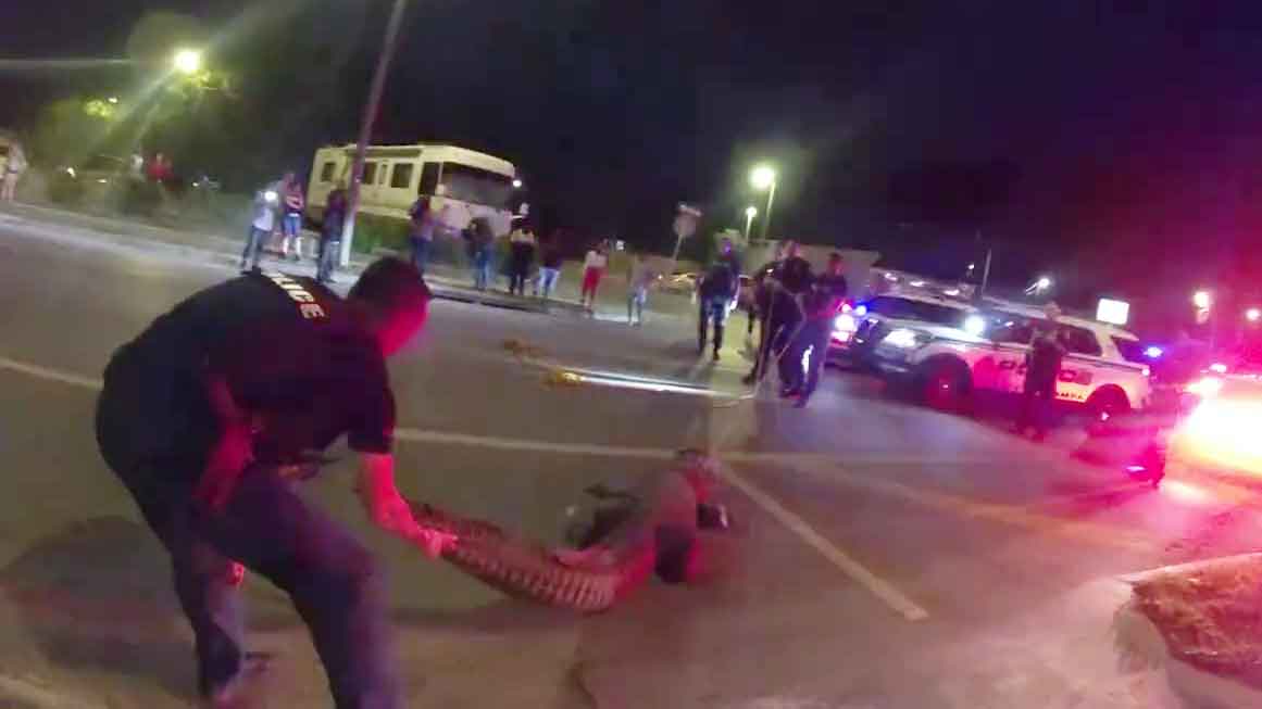 Polizist schmeißt sich auf riesigen Alligator - Videos from The Weather Channel