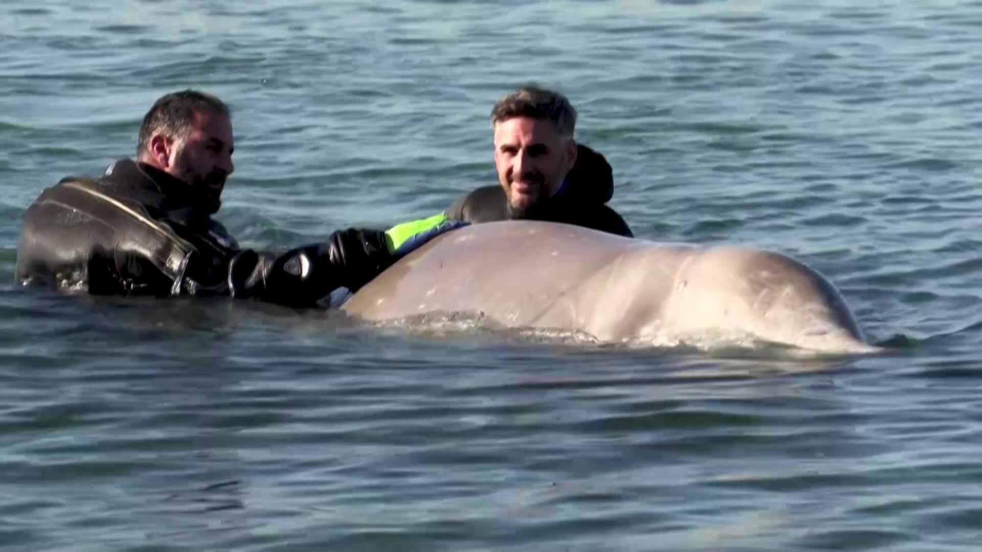 Rettungsaktion für gestrandetes Walbaby vor Griechenland