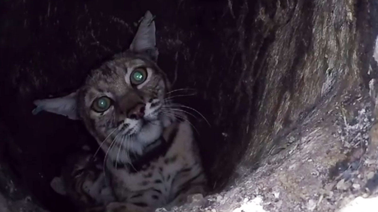 Diese kalifornische Rotluchs-Mutter hat sich mit ihren drei Jungen einen ungewöhnlichen Unterschlupf gesucht - in einer ausgebrannten Eiche. Grund dafür war nicht zuletzt ein Waldbrand im Jahr 2018.