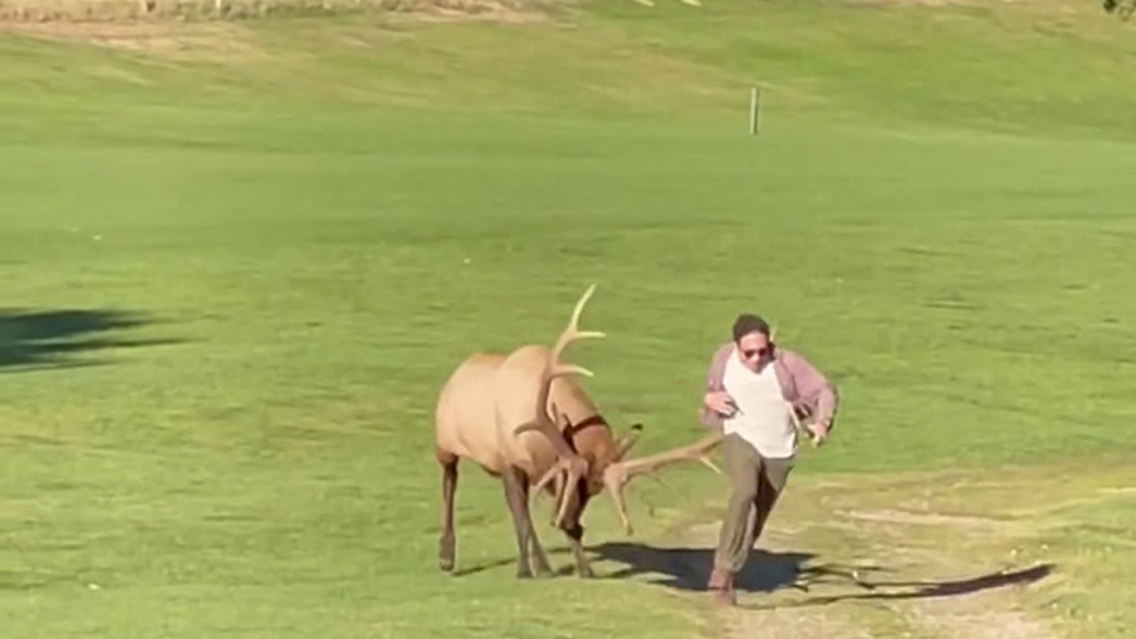 Dieser Tourist wollte im Estes Park, Colorado, einen Elch filmen und wagte sich dabei viel zu nah an das Tier heran. Den Wagemut hat er nun wohl nicht mehr.