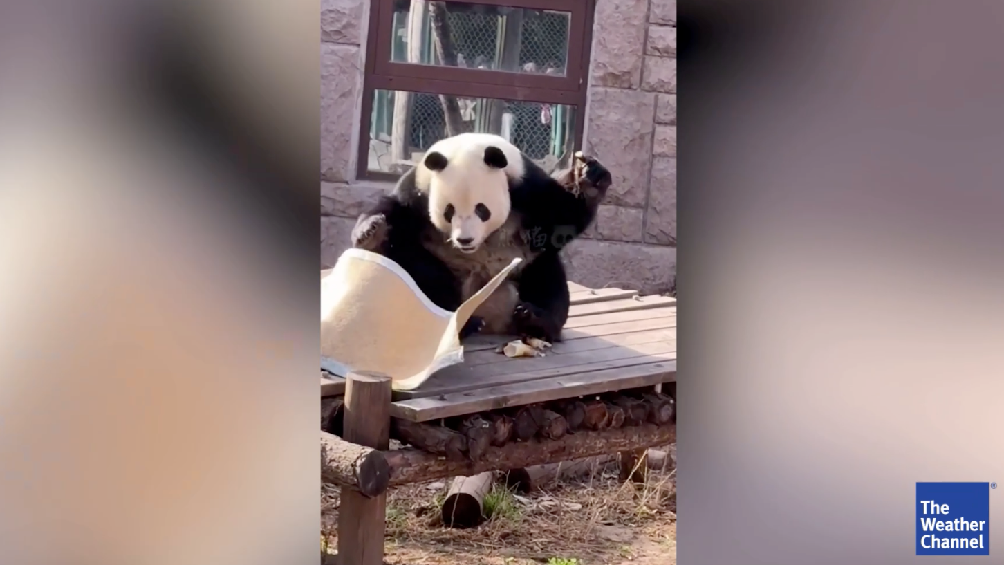 Wind jagt Panda gehörigen Schrecken ein - Videos from The Weather Channel
