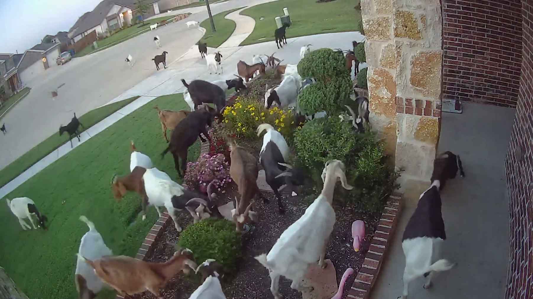 Eine Ziegenherde macht sich über diesen Vorort in Texas her. Etwa 40 Ziegen entkamen und stürzten sich auf die Blumen in den Vorgärten der Nachbarschaft.