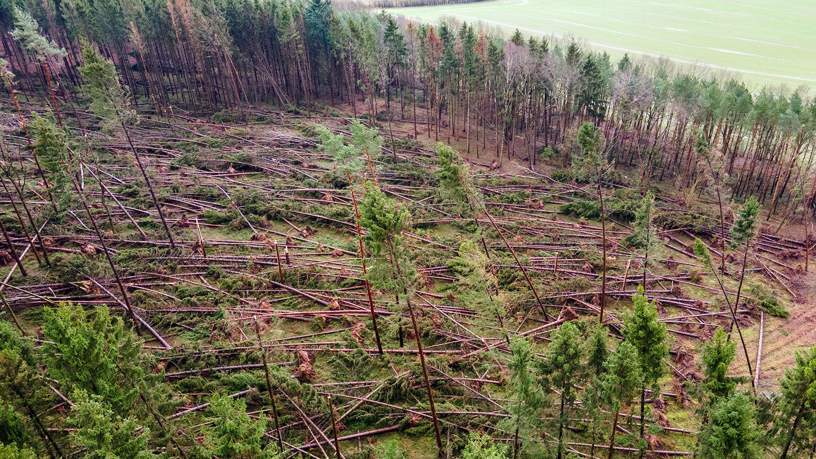 Die Satellitendaten zeigen auch das Ausmaß von Sturmereignissen in Ostbayern, Sachsen-Anhalt und Sachsen. Die aktuelle Sturmlage über Deutschland werde voraussichtlich wieder dazu führen, dass vielerorts Holz entfernt werden müsse, lautete die Prognose.
