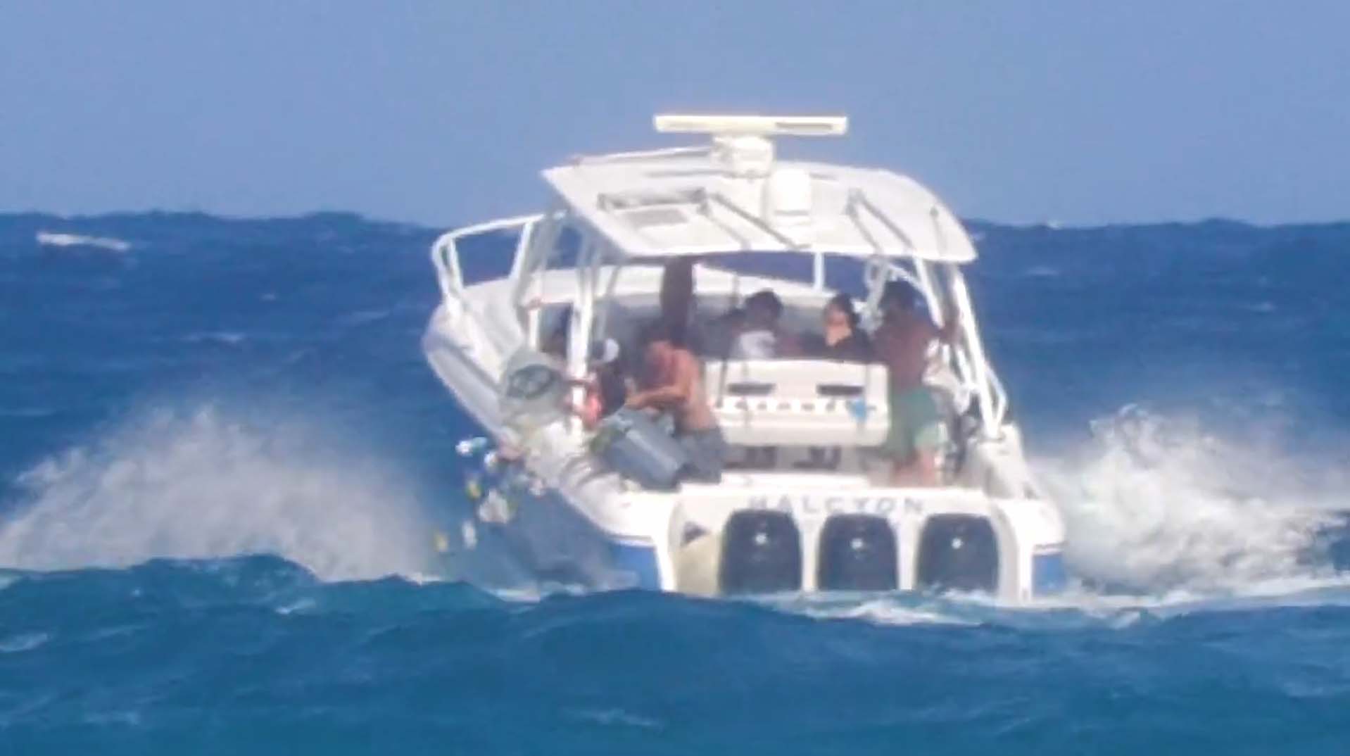 Diese jungen Bootsfahrer zeigen auf schockierende Art ihre Respektlosigkeit vor Natur und Umwelt. Nach einer Party in Florida kippen sie einfach zwei volle Mülltonnen ins Meer.