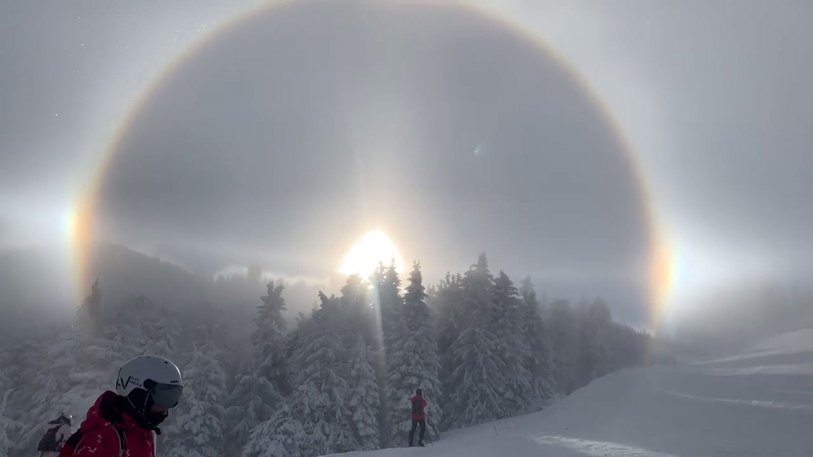 Über dieser Skipiste zeigen sich auf einen Schlag gleich zwei verblüffende Phänomene.
