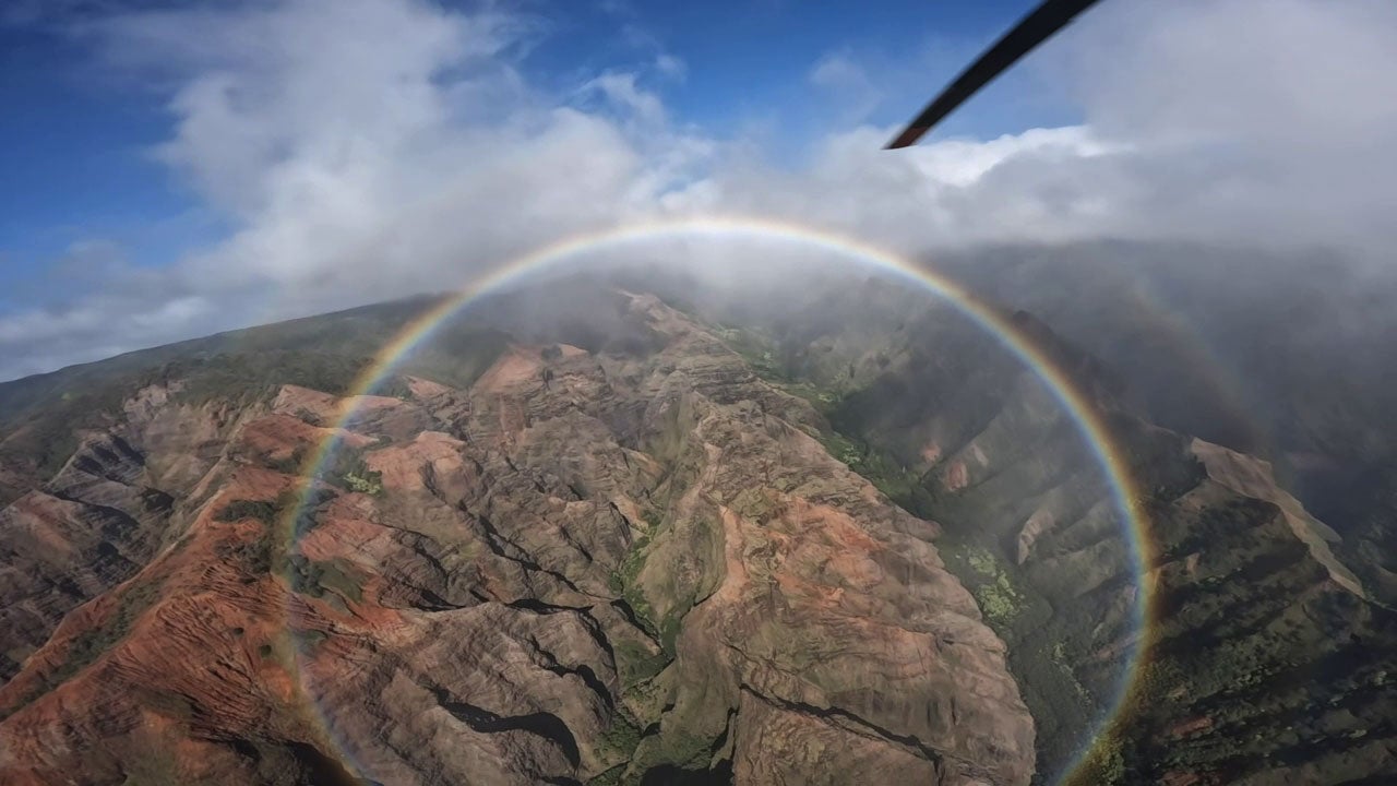 Dieser Hubschrauberpilot erlebte auf Hawaii einen bemerkenswerten Anblick eines kreisrunden Regenbogens.