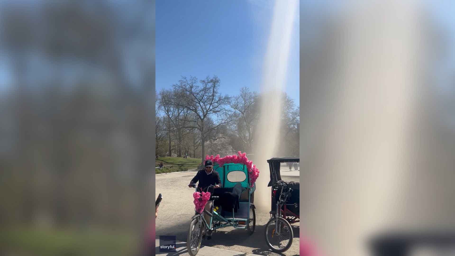 Staubteufel wirbelt durch Central Park – bis Fahrradtaxi kommt