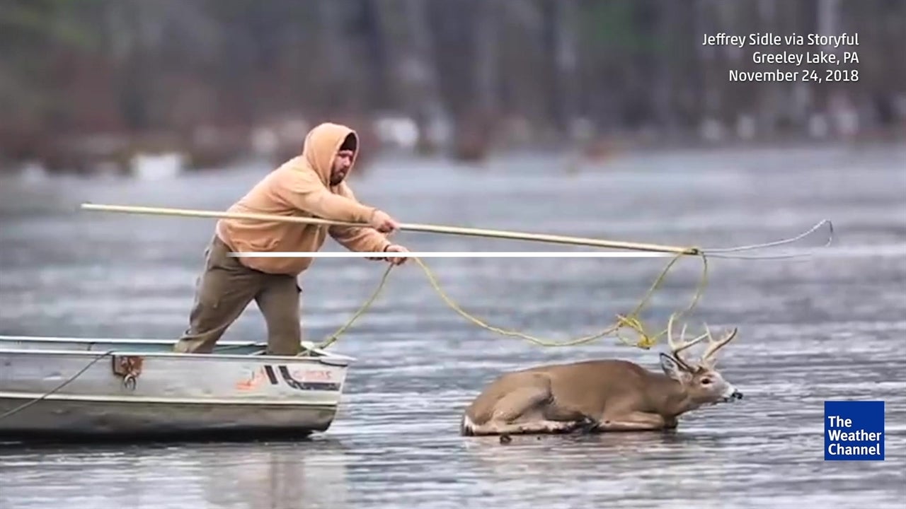 Mira este adorable rescate de un venado en el hielo - Videos de The Weather Channel