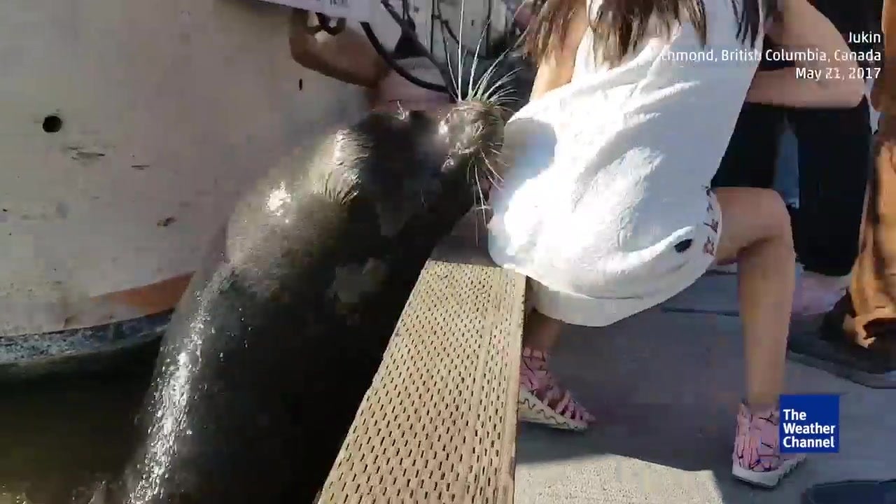 León marino arrastra niña al agua - Videos de The Weather Channel