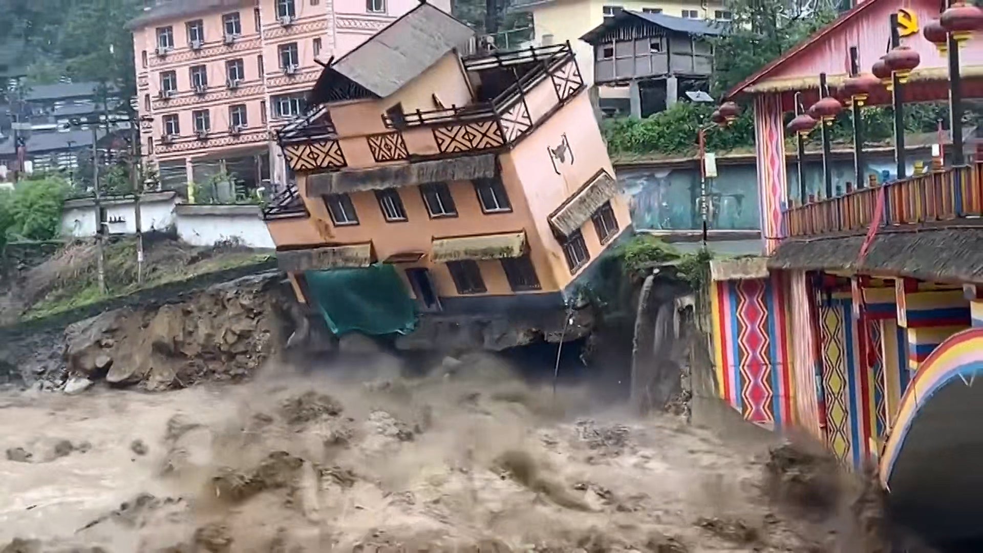 Una casa junto al río se derrumbó en aguas de inundación torrenciales tras las fuertes lluvias en el suroeste de China. Las inundaciones repentinas en la provincia de Yunnan causaron daños a edificios, carreteras y puentes en la zona.
