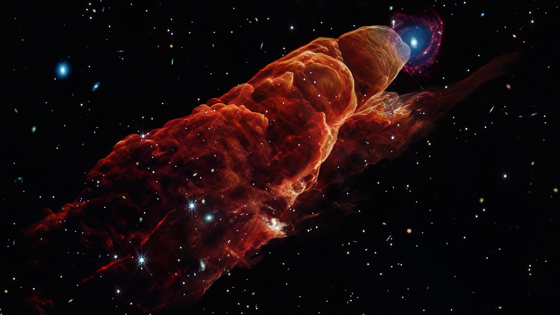Los científicos llamaron a este objeto descubierto por primera vez en 2006 un "tornado cósmico" debido a su forma helicoidal. La estructura en sí no es extraordinaria para los estándares espaciales. Se llama objeto Herbig-Haro, y se formó por eyecciones de chorros de una estrella que se forma cerca, según la NASA. Pero una mirada más cercana y reciente del telescopio Webb reveló algo más aleatorio, y por pura suerte. Esto es lo que era.