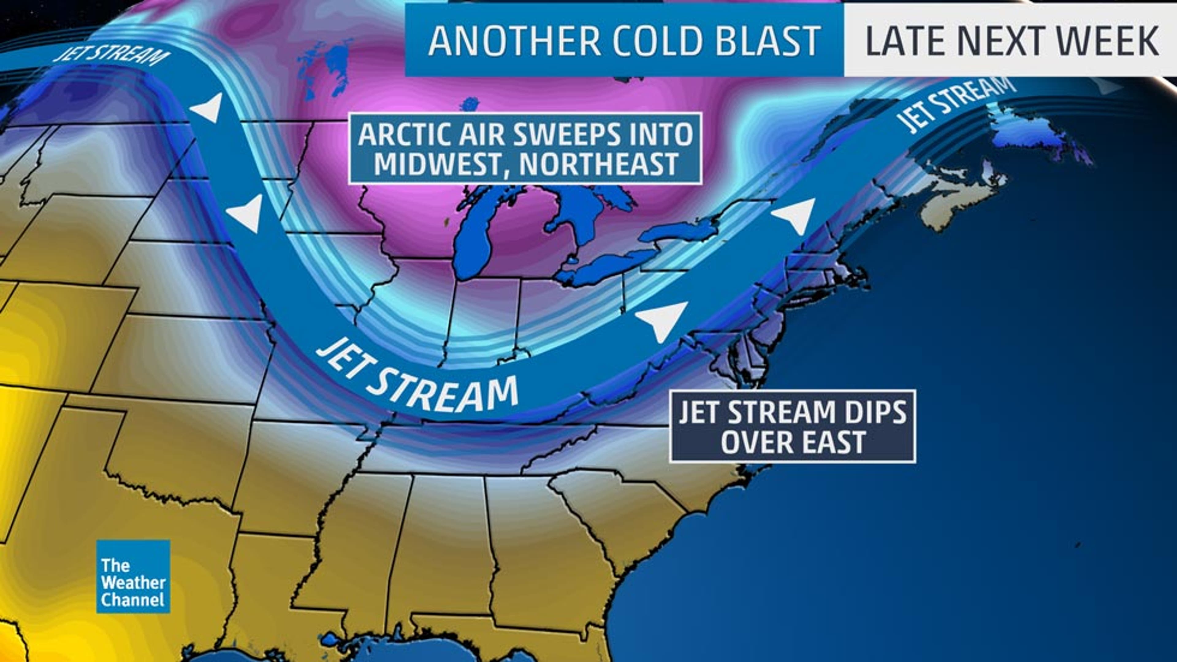 This next blast of colder-than-average temperatures will then spread across the Midwest and into portions of the East through next weekend.