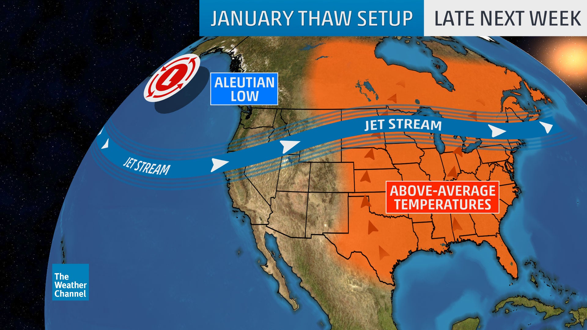 Later next week, however, a fundamental change of the jet stream pattern may present a stronger January thaw.