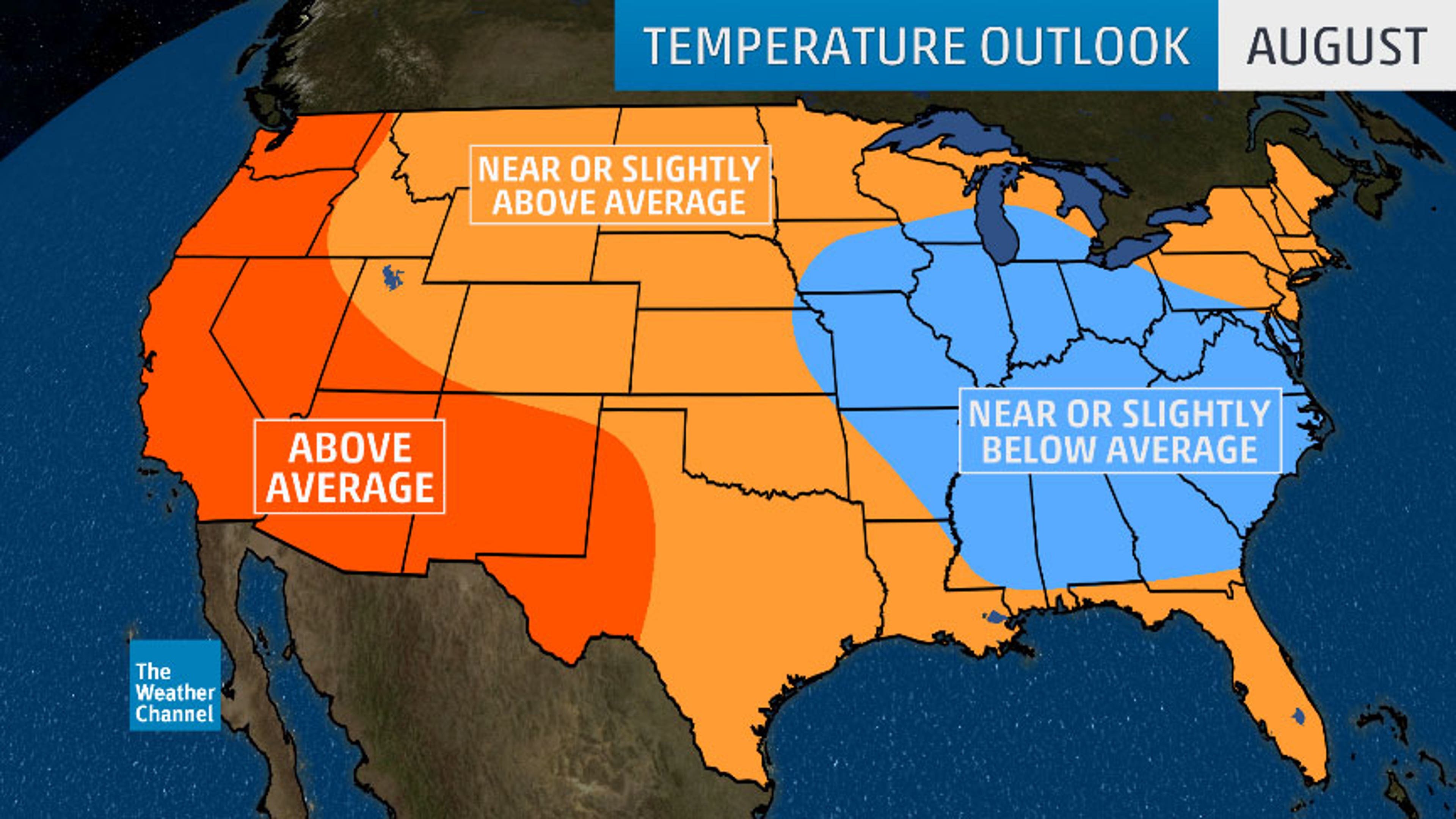 August 2018 temperature outlook from The Weather Company, an IBM Business.