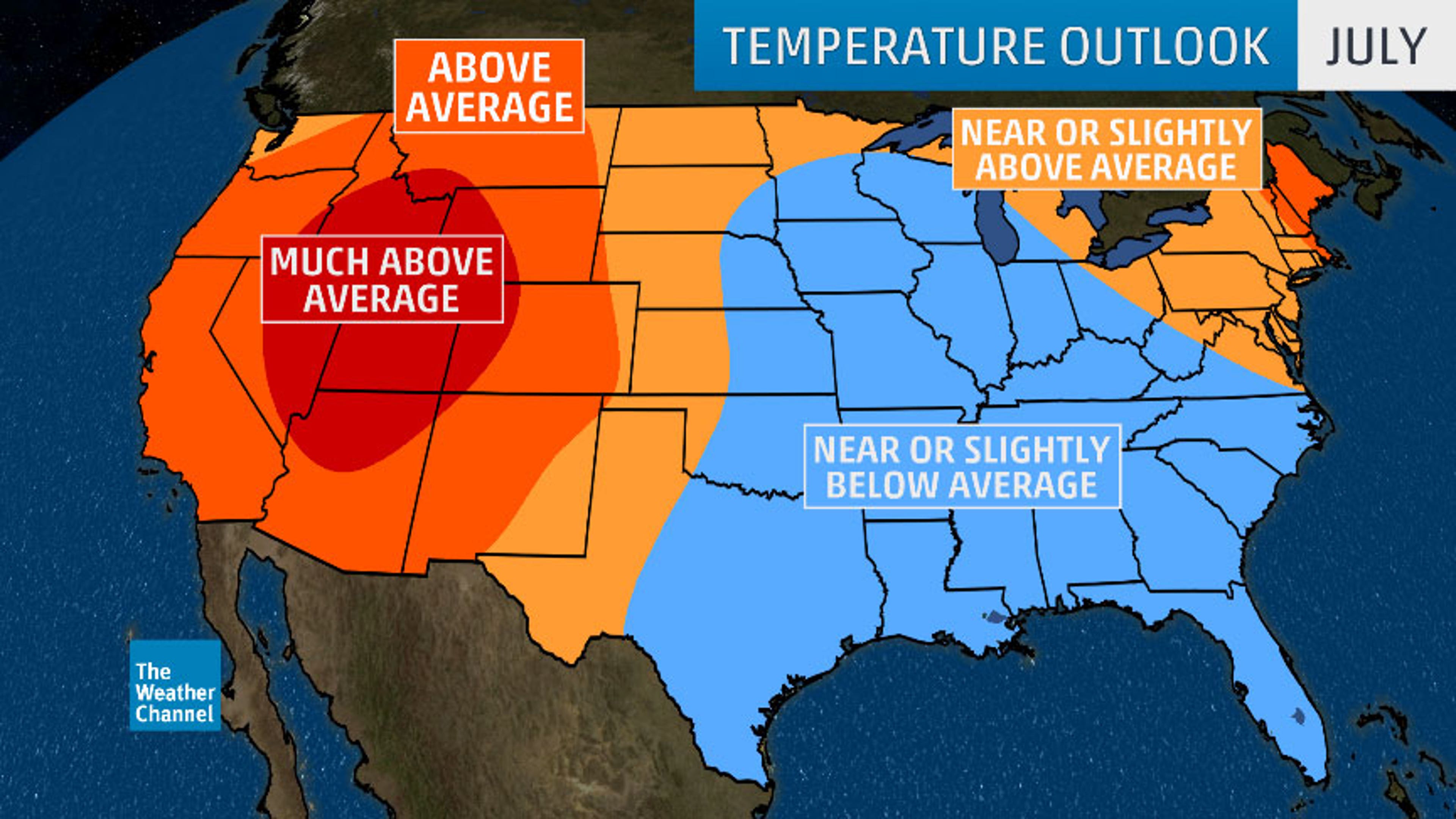 July 2018 temperature outlook from The Weather Company, an IBM Business.