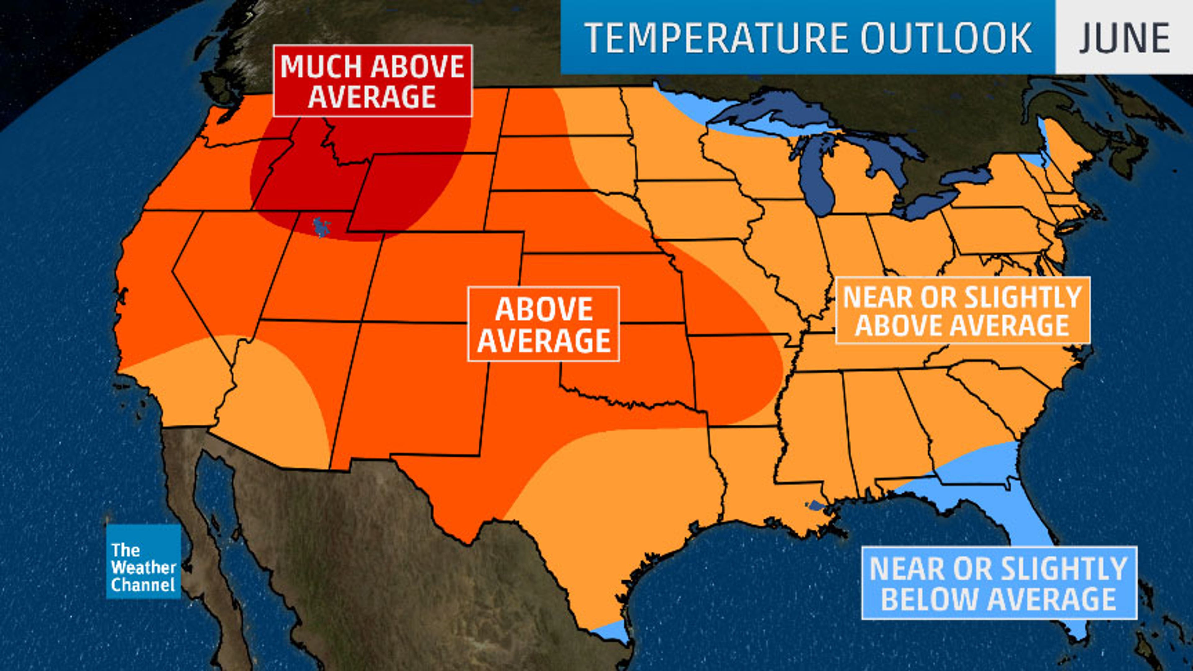 June 2018 temperature outlook from The Weather Company, an IBM Business.