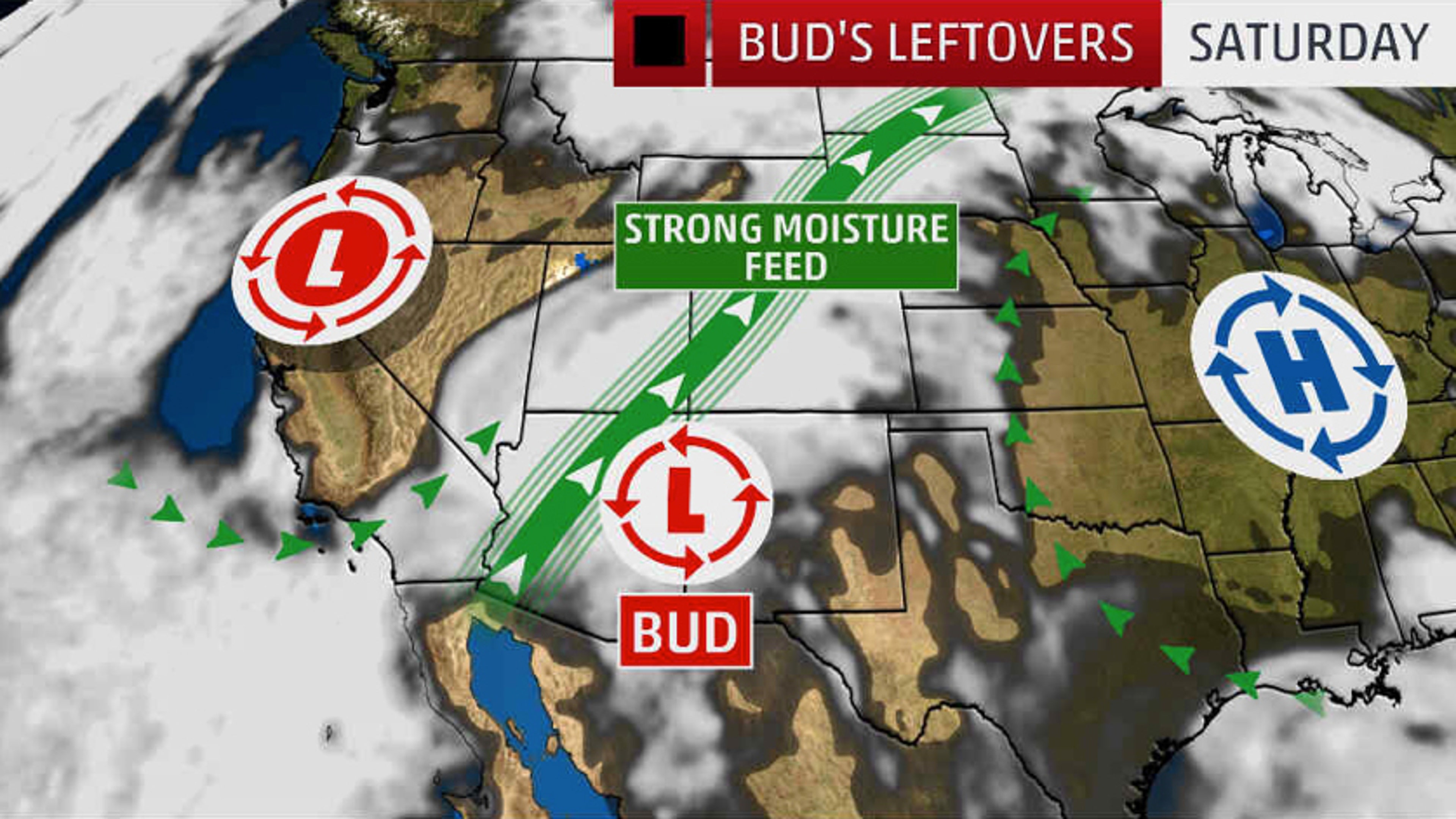Moisture from whatever is left of Bud will bring a wealth of tropical moisture from the Pacific and some cooler air, too.