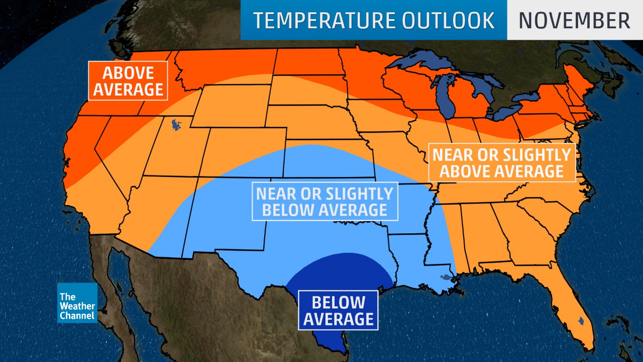 The remainder of the Lower 48 states are expected to see temperatures near or slightly above average in November.