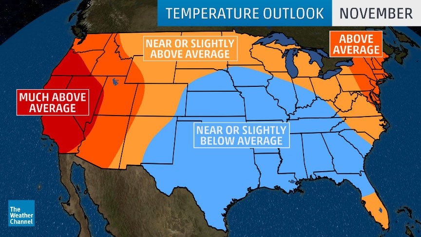 November temperature outlook from The Weather Company, an IBM Business.