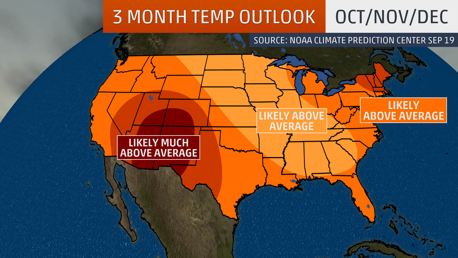 It should be noted that the outlook doesn't mean there won't be any below average temperatures between October and December. An individual cold front or an upper-level ridge of high pressure could lead to a brief period of colder or warmer temperatures, respectively, that doesn't align with the overall three-month pattern predicted by the CPC.