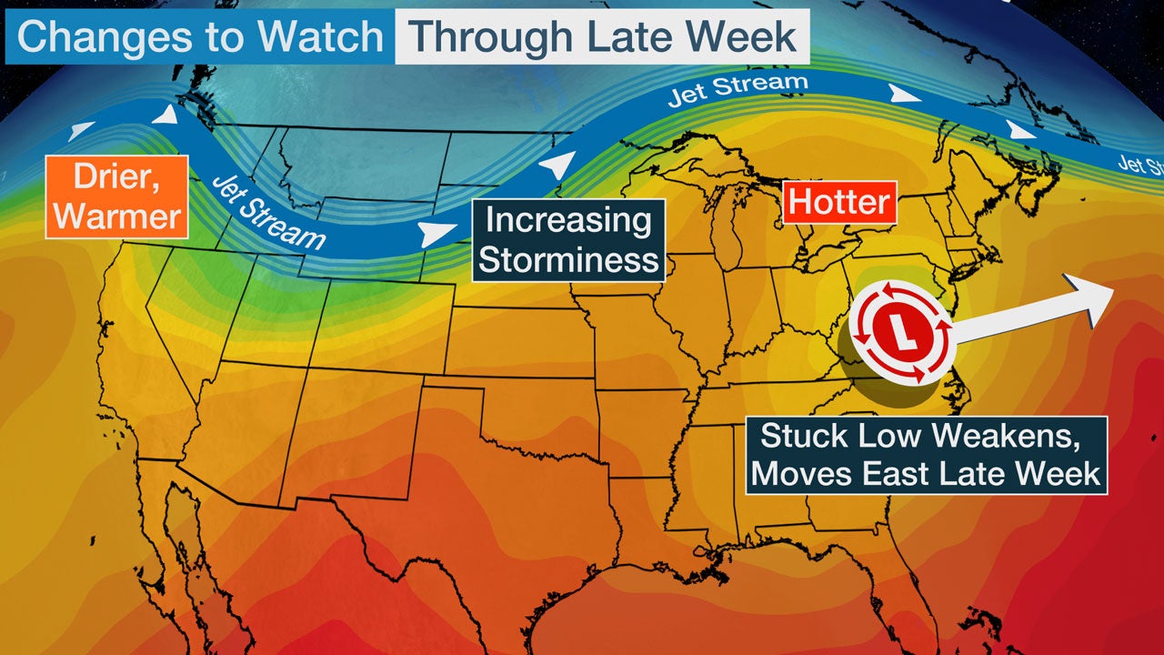 Multiple weather changes are taking place from coast to coast this week, and depending on where you live, that could mean it's going to get hotter, drier or stormier.