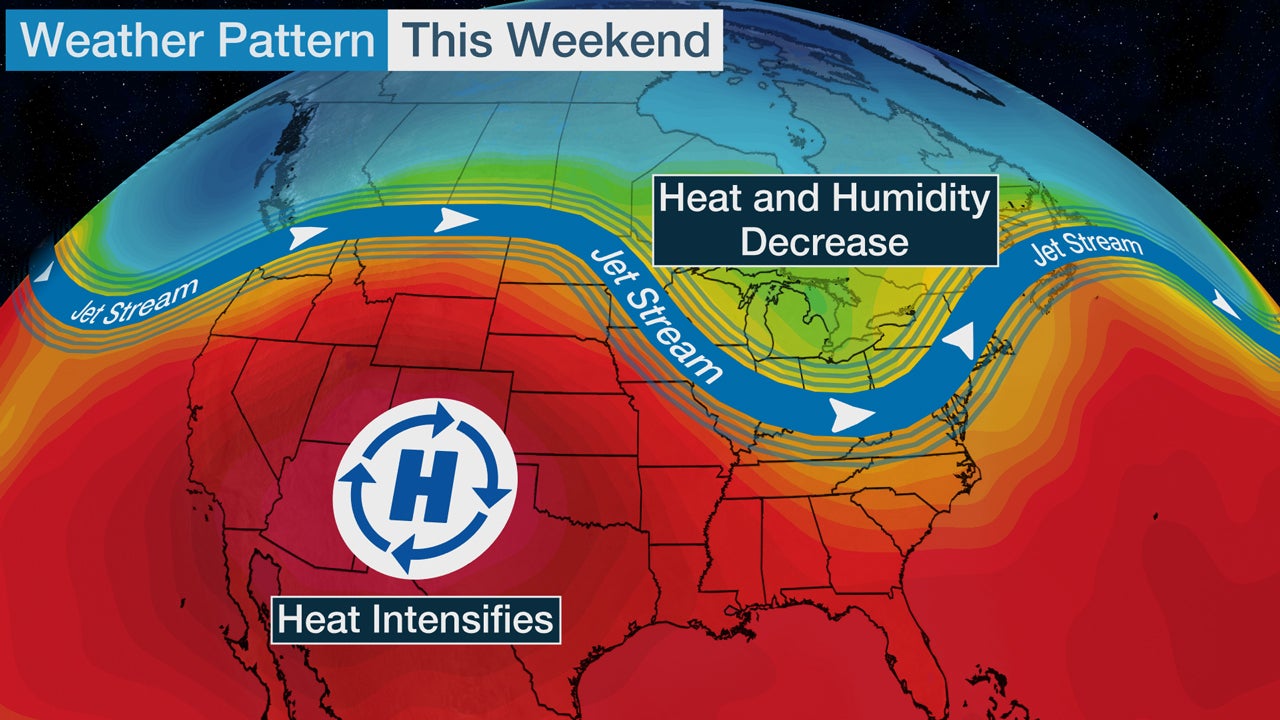 This weekend, the jet stream pattern change should usher in at least some modest relief from the hot and humid weather.