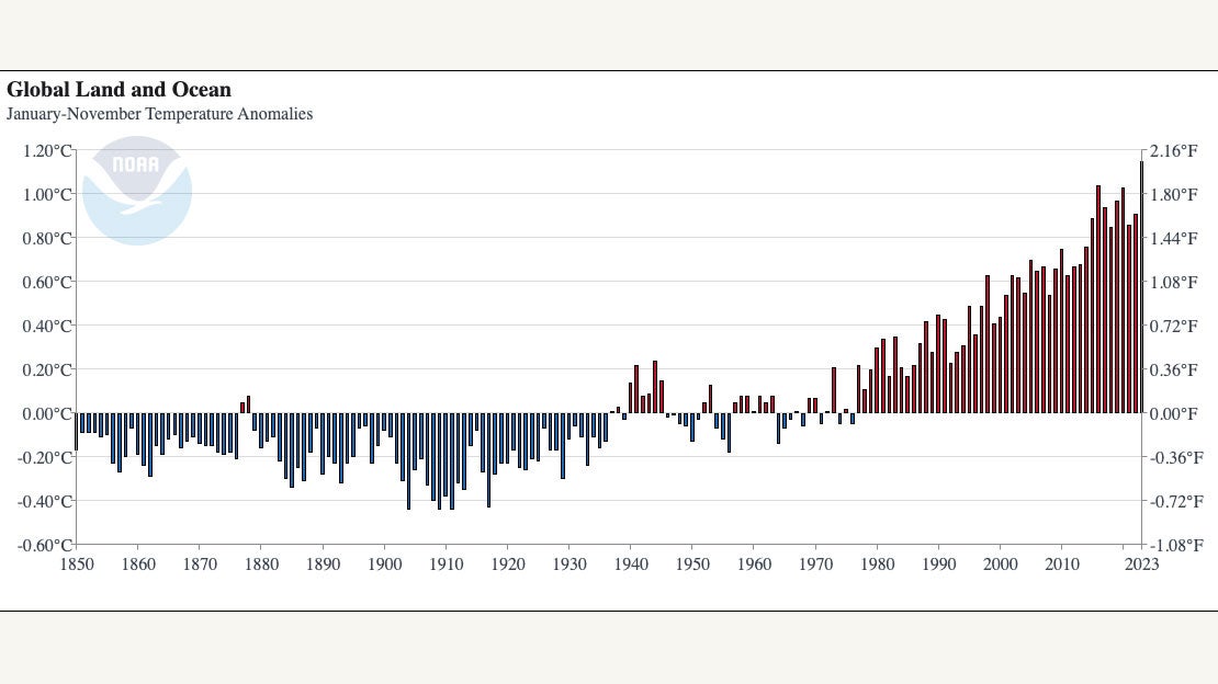 T​his warming trend is concerning as the globe continues to experience impacts from climate change. We are hoping for at least a slightly cooler year across the Earth in 2024.