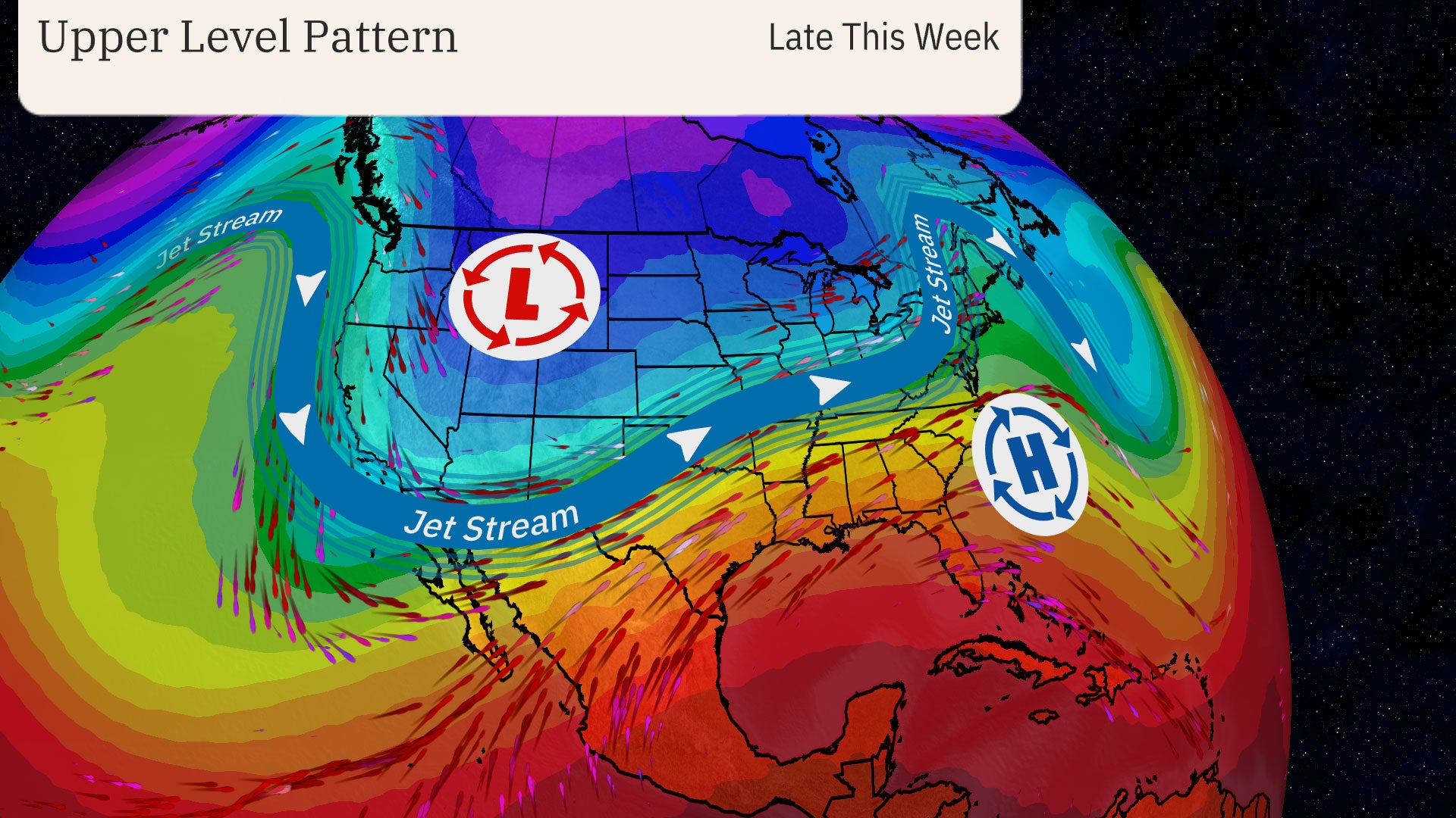 A​n amplified jet stream has been in place, specifically a northward bulge over portions of the central and eastern United States with a southward dip over the West.
