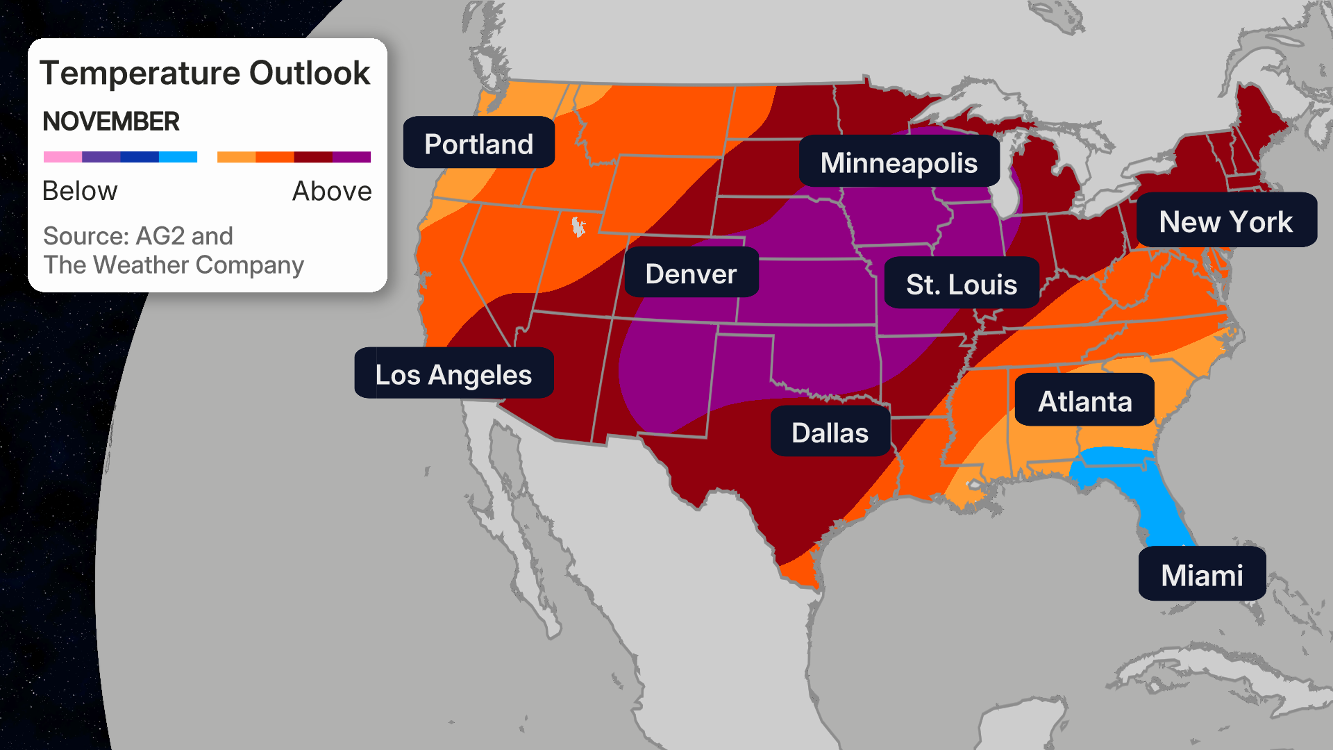 Put bluntly by AG2 forecaster Dr. Todd Crawford: “We do expect a pattern flip towards colder conditions sometime in the last week of November or first week of December.”