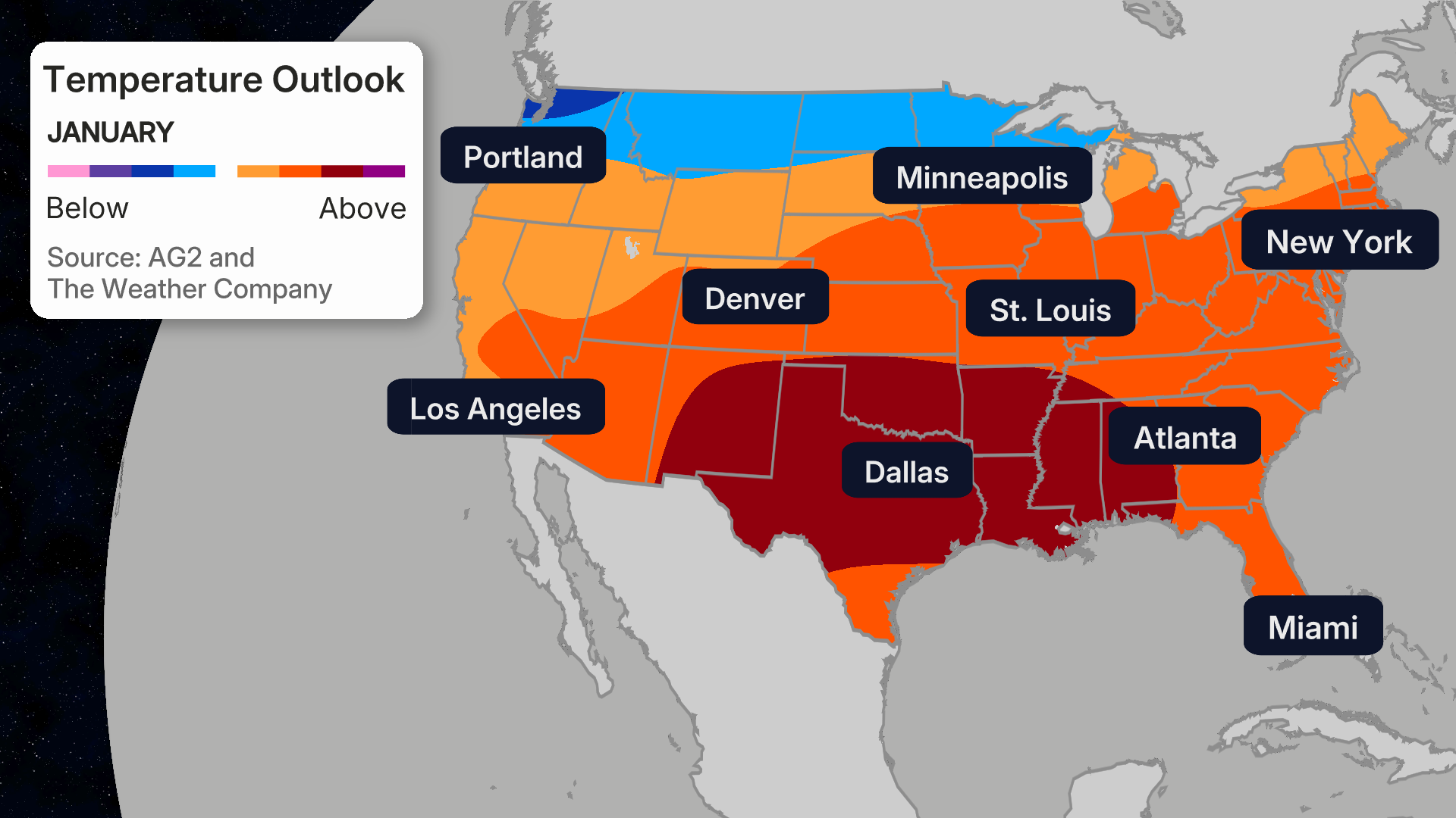 • January is likely to be a continuation of the end-of-December pattern featuring above-average warmth across much of the southern two-thirds of the country.