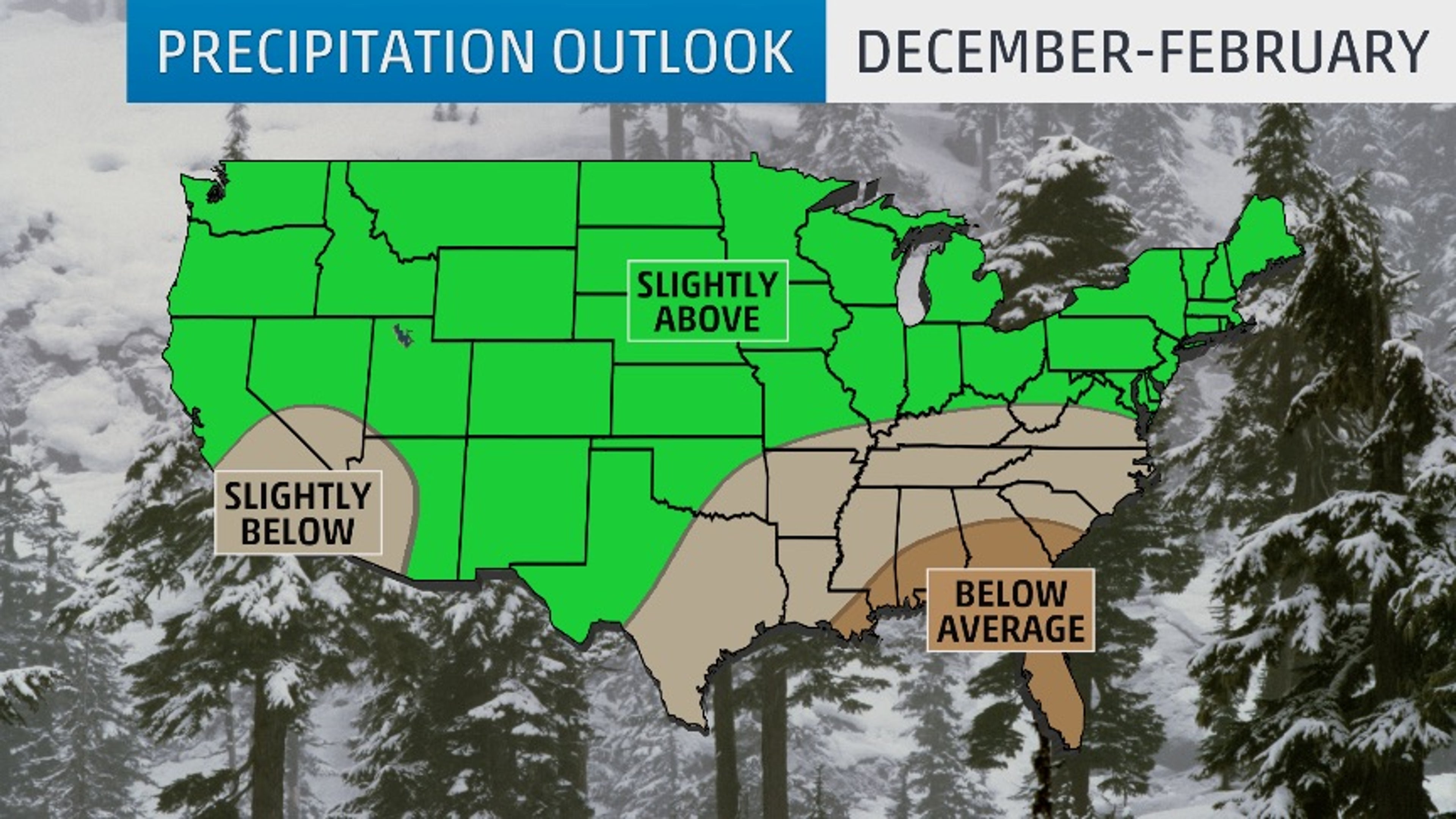 Precipitation this winter will be near to slightly wetter than average across the northern tier, which is generally consistent with a La Niña winter.