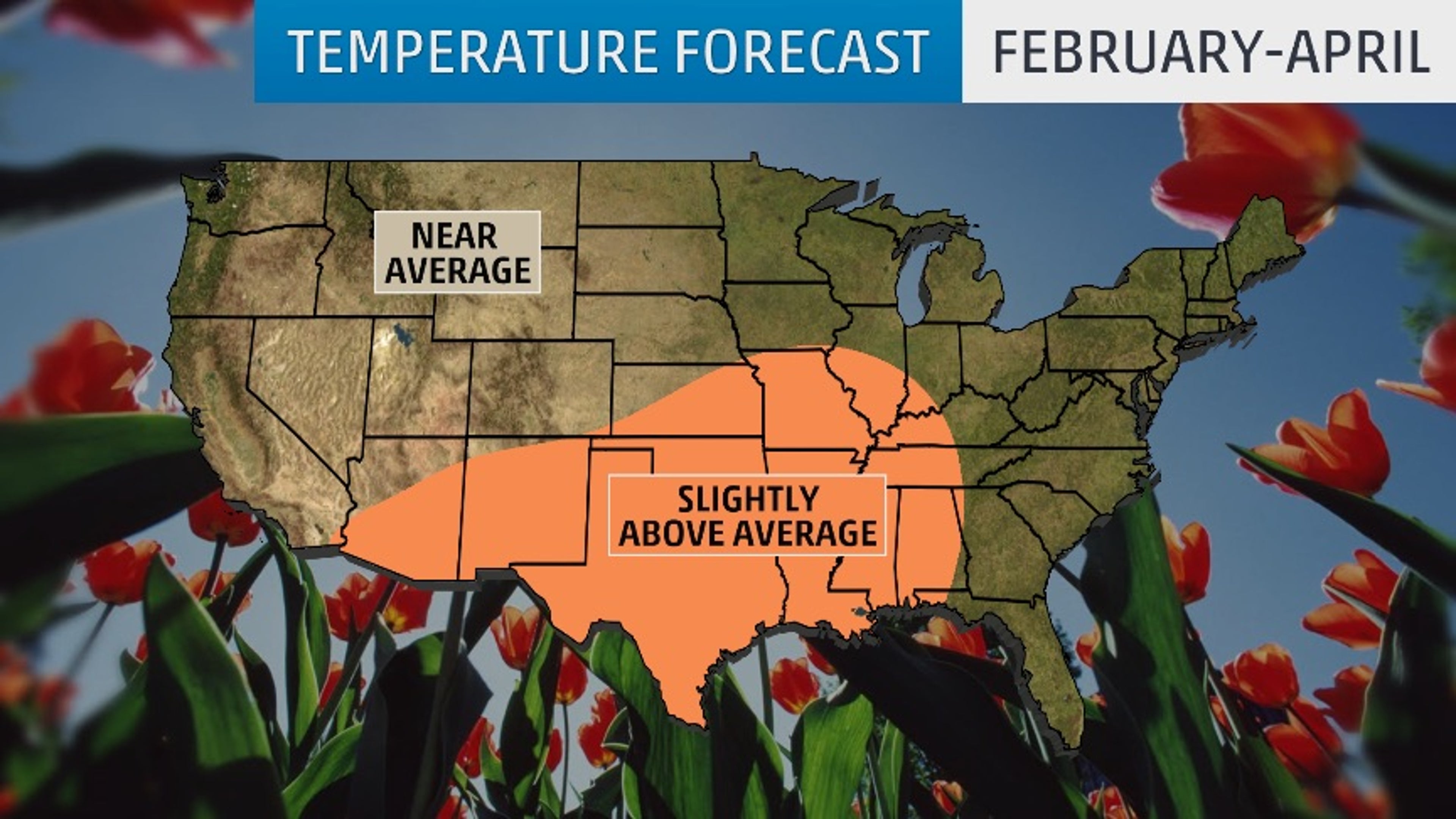 February-April temperature outlook from The Weather Company, an IBM Business.