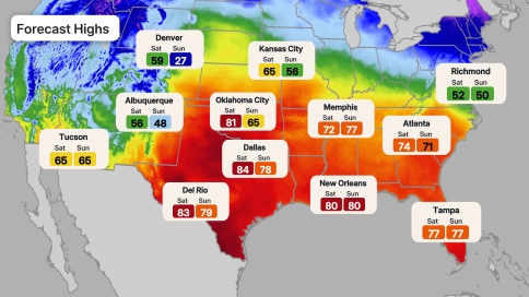 A break from the record heat has arrived for much of the West and southern Plains. In addition, after a shot of cold air this weekend and into Monday in parts of the East, warmer temperatures will return.