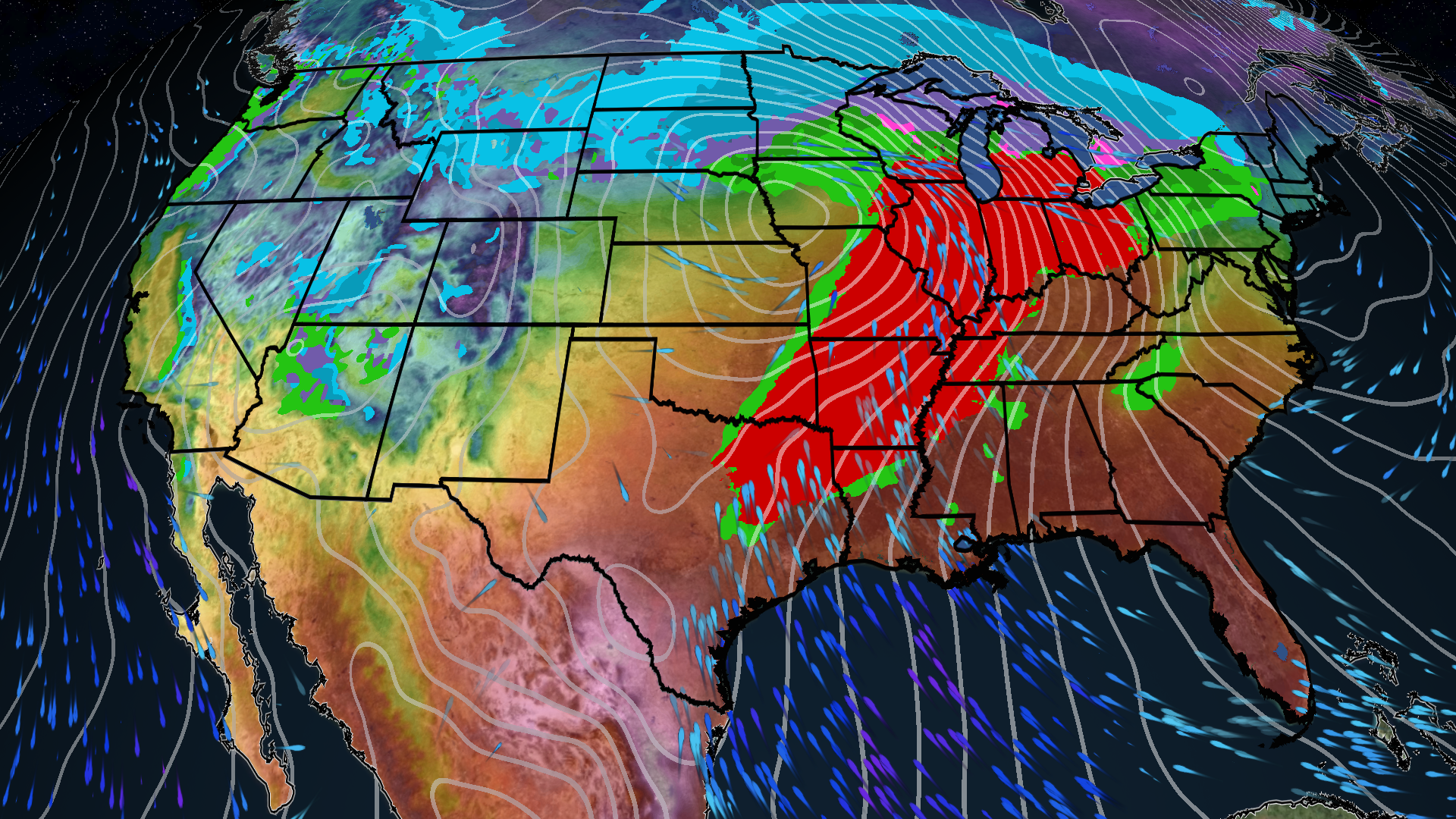 Severe storms take aim across the South and East to start the week. Winter Storm Omari will bring snow and ice from the Northern Plains across the Great Lakes to New England. Another severe weather outbreak is possible midweek across the Midwest and South. And if that wasn’t enough - numerous high temperature records could fall as the South heats up. Here’s what we’re watching this week.