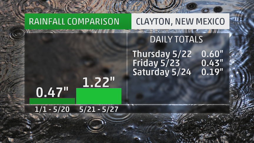 Then, three days of rain brought a total of 1.22 inches to the city. While this was about 2.6 times more than the entire year-to-date total previously, it still leaves Clayton with less than half its average annual rainfall as of May 28.