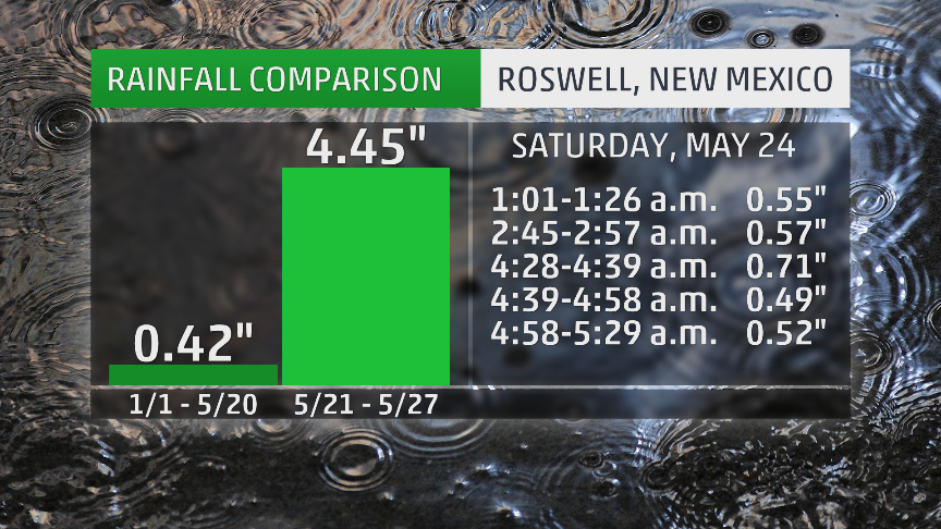 The rain wiped out the city's rainfall deficit and became the heaviest single-day rainfall in Roswell since Aug. 9, 1916. It also led to some street flooding and flooded a local cemetery.