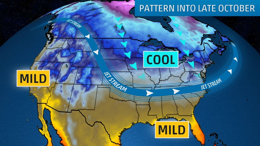 Setup for cooler-than-average temperatures in the eastern U.S. into late October.